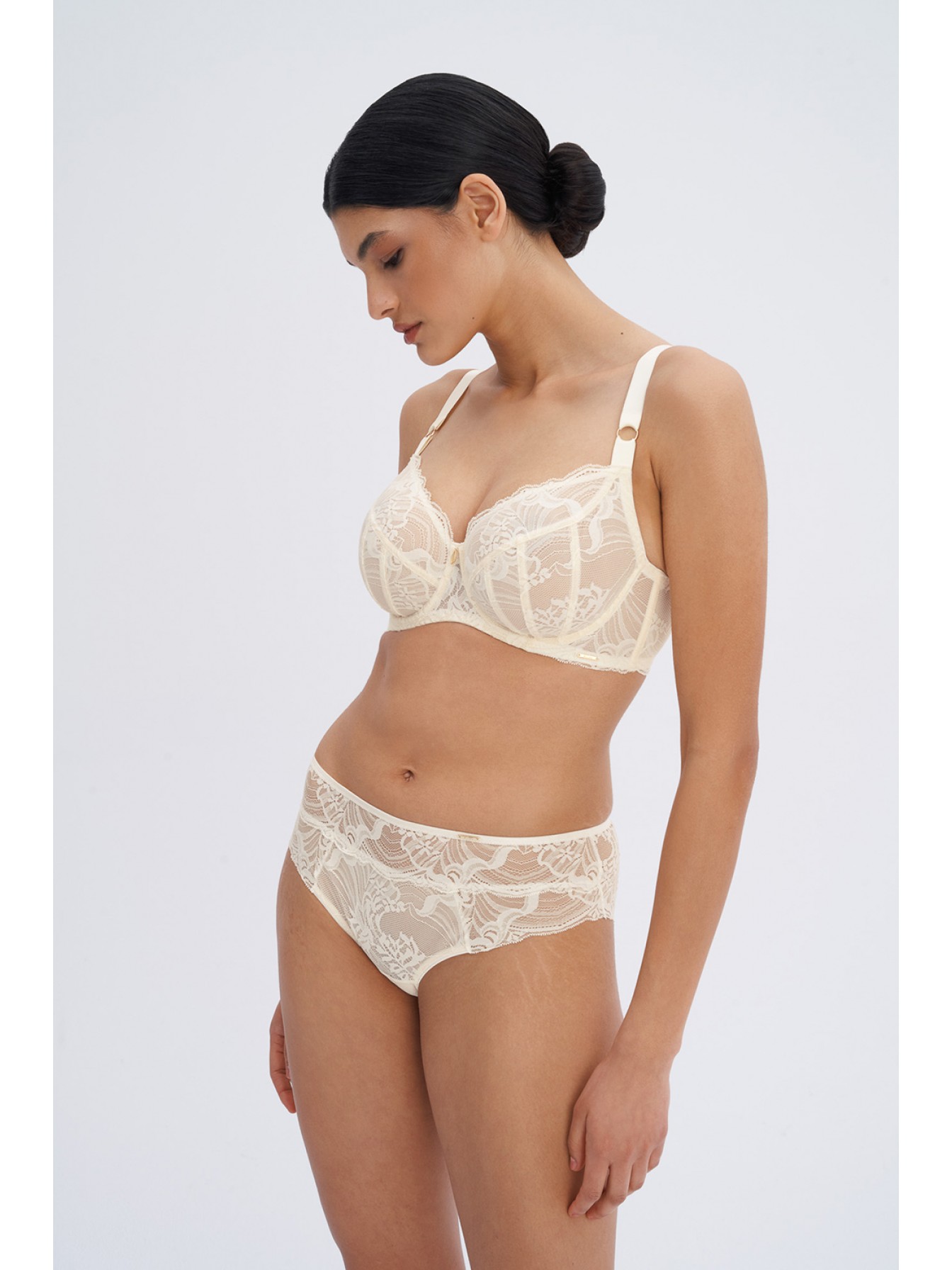 Нежный кружевной бюстгальтер Pure Romantic с мягкими чашками на косточках и с боковой поддержкой. Бретельки регулируются по длине, на спине застежка на крючки-петли. Внутри чашечки проложены неэластичной сеточкой. Данная модель идеально подчеркнет форму вашего бюста, подойдет как в качестве дополнения к повседневному стилю, так и в качестве нижнего белья для особых случаев.