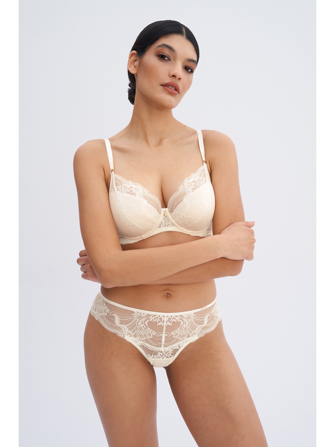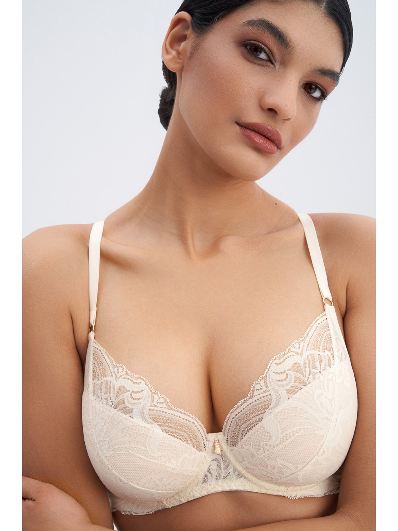 Невесомый бюстгальтер Pure Romantic на косточках глубокого синего оттенка. Чашки на тонком поролоне с пуш-ап вкладышами. Внутренняя сторона чашки проложена хлопковым трикотажем, наружная покрыта красивым кружевом. Бретельки регулируются по длине. На спине застежка на крючки-петли. Между чашек красивое украшение в виде подвески. Чашки поддерживают и приподнимают бюст, сохраняя при этом его естественную форму.