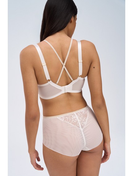 Кружевной бюстгальтер Chiara Gold M с чашками на каркасах. Бретельки регулируются по длине, на спине застежка на крючки-петли.