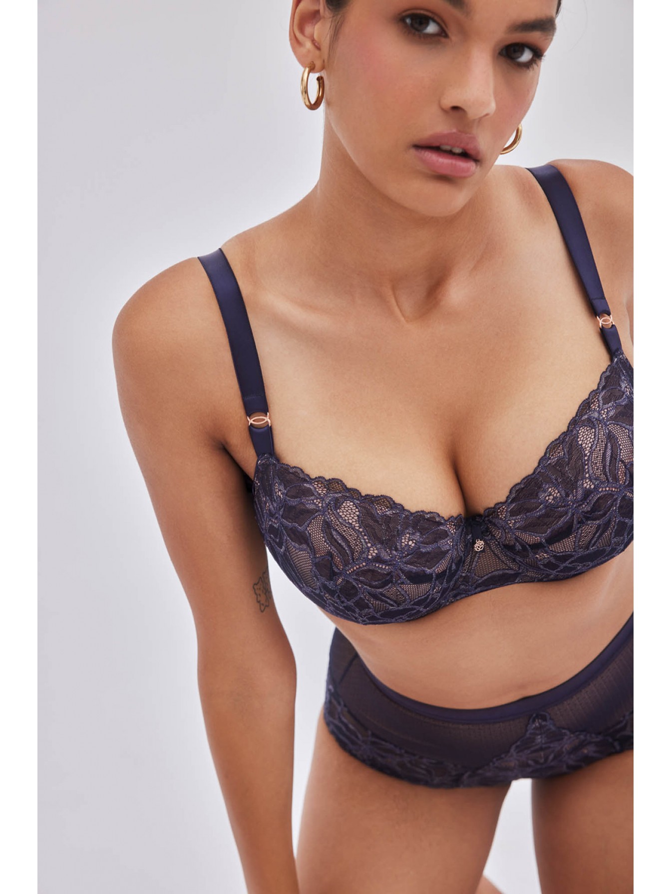 Роскошный кружевной бюстгальтер Glow на каркасах и с боковой поддержкой. Чашки на тонком поролоне. Внутренняя сторона чашки проложена хлопковым трикотажем. Бретельки регулируются по длине, на спине застежка на крючки-петли. Данная модель идеально подчеркнет форму вашего бюста, подойдет как в качестве дополнения к повседневному стилю, так и в качестве нижнего белья для особых случаев.