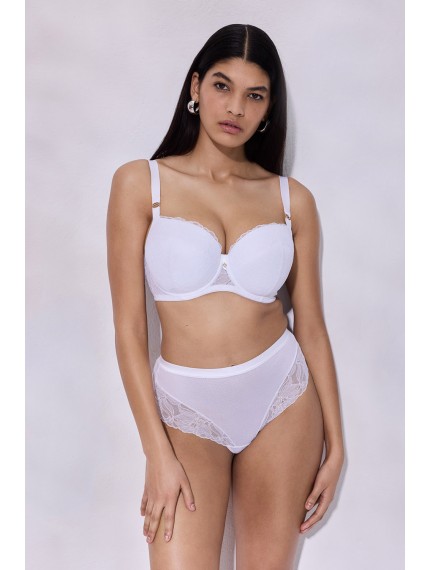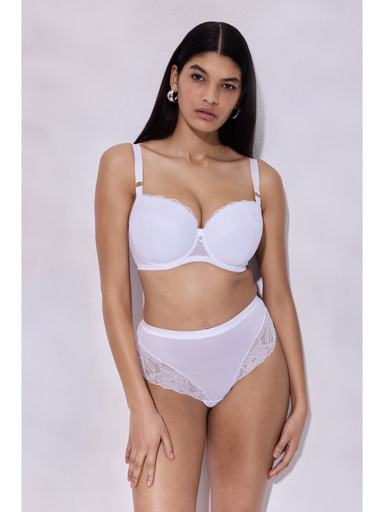 Бюстгальтер Glow на каркасах с чашками на тонком поролоне и съемными вкладышами. Внутренняя сторона чашки проложена хлопковым трикотажем, наружная покрыта роскошным кружевом с цветочным узором. Бретельки регулируются по длине, на спине застежка на крючки-петли. Данная модель идеально подчеркнет форму вашего бюста, подойдет как в качестве дополнения к повседневному стилю, так и в качестве нижнего белья для особых случаев. Между чашек украшение в виде подвески и атласной ленточки.