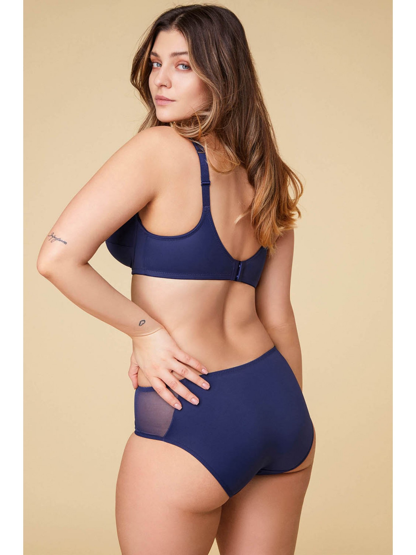 Бюстгальтер с мягкой чашкой на косточках, выполнен из эластичной микрофибры. Верхняя деталь чашки выполнена из эластичной сетки. Внутренняя поверхность чашек 100% хлопок. Бретели широкие, несъемные, регулируемые по длине.