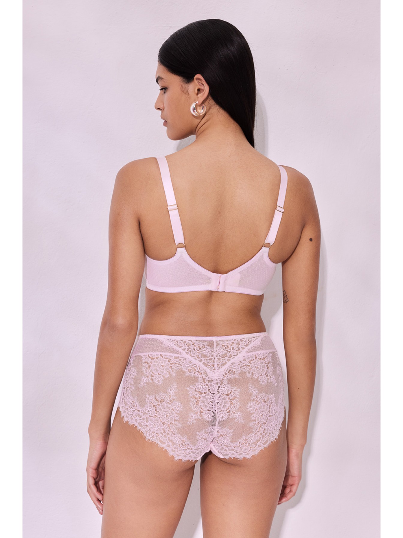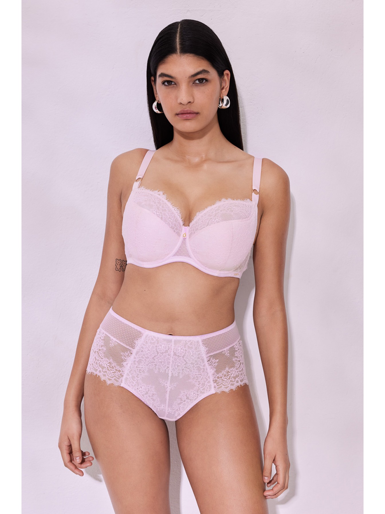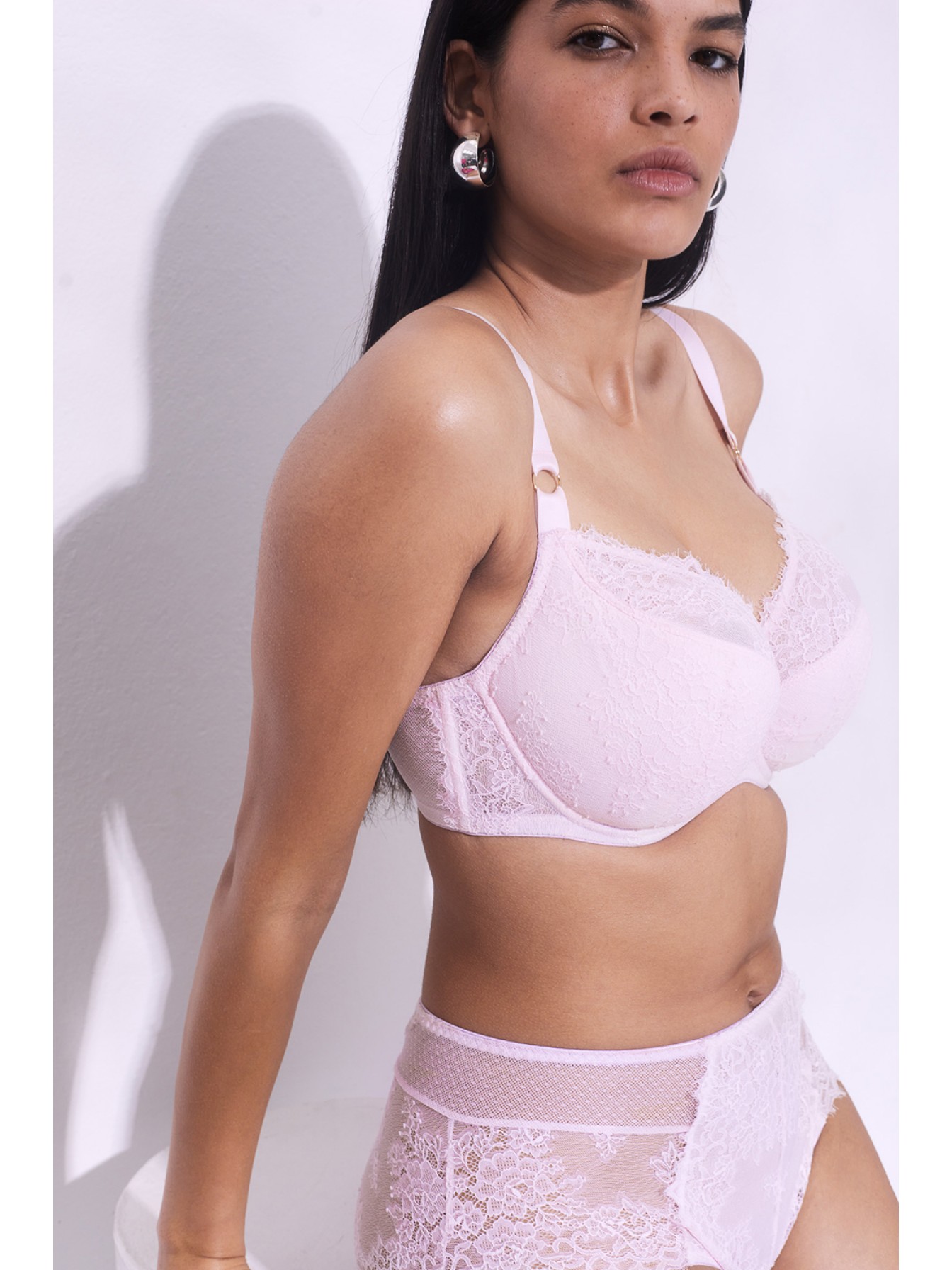 Бюстгальтер Hush Blush на косточках, с боковой поддержкой, нижняя часть чашки на уплотнителе, верхняя из нежного кружева. Внутри чашечки проложены хлопковым трикотажем. Бретельки не отстегиваются, регулируются по длине. Между чашек красивое украшение в виде подвески. На спинке застежка регулируется.