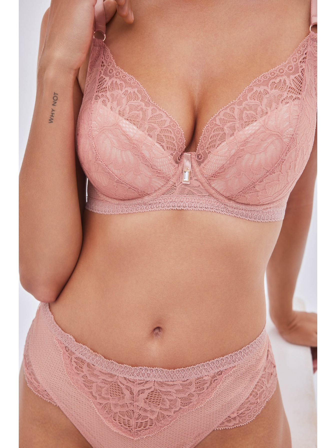 Роскошный бюстгальтер Nude Rose на косточках нежного розового цвета. Чашки на тонком поролоне с пуш-ап вкладышами. Внутренняя сторона чашки проложена хлопковым трикотажем, наружная покрыта красивым кружевом. Бретельки регулируются по длине. На спине застежка на крючки-петли. Между чашек красивое украшение в виде подвески и атласного бантика. Чашки поддерживают и приподнимают бюст, сохраняя при этом его естественную форму. Бюстгальтер декорирован стрэпами.