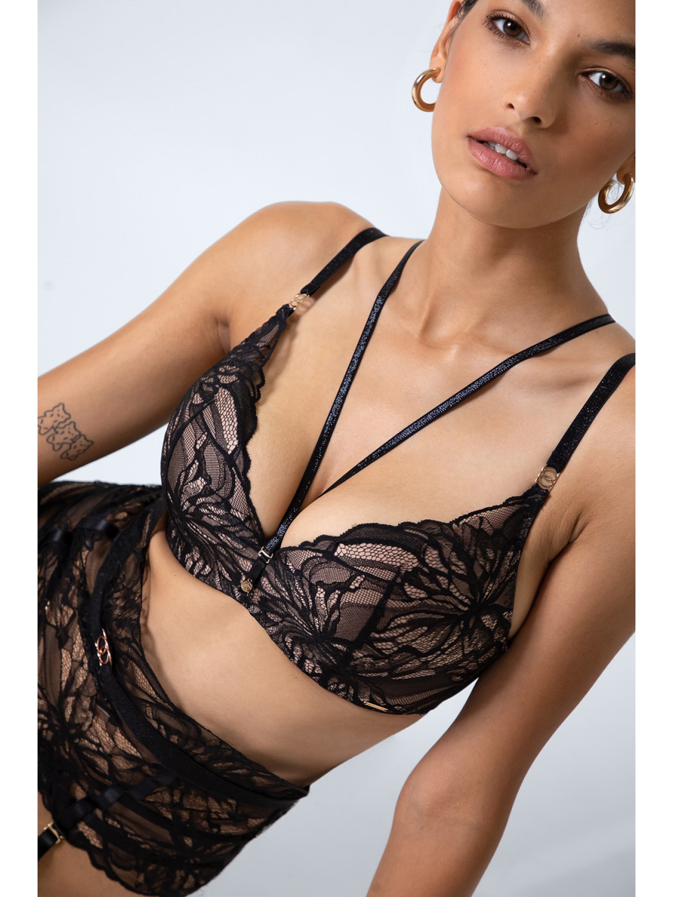 Кружевной бюстгальтер The Icon с формованными чашками. Внутренняя сторона чашки проложена хлопковым трикотажем. Бретельки регулируются по длине, на спине застежка на крючки-петли. Комфортный бюстгальтер подойдет под любую одежду. Чашечки поддерживают и максимально увеличивают бюст, создают пышное декольте.