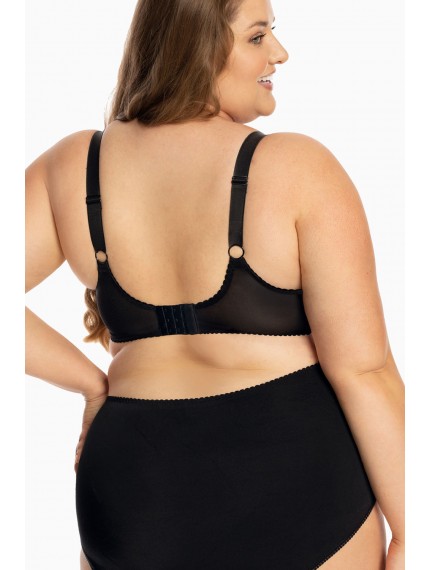 Черный мягкий бюстгальтер Subtle Temptation сочетает в себе элегантность и комфорт для полных женщин. Чашка с тройным членением и двойная усиленная боковая часть собирают грудь внутрь, придают бюсту приподнятый и округленный вид. Подкладка из мягкой прочной сетки в нижней части чашки добавляет легкости и комфорта при ношении. Двойные подвижные боковые косточки гарантируют адаптацию к движению тела и повышают комфорт при ношении. Тройной крючок всех размерах.