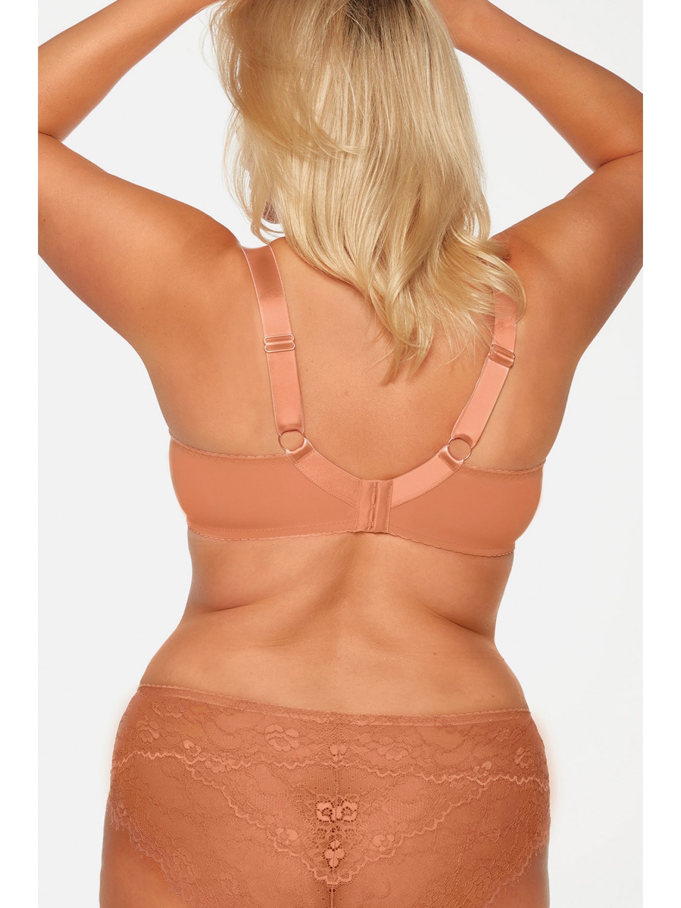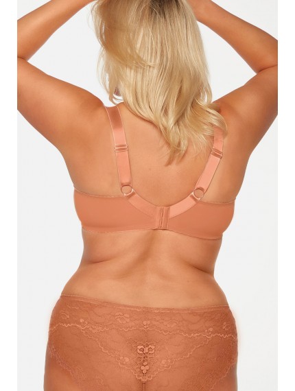Персиковый мягкий бюстгальтер Apricot Ilusion сочетает в себе элегантность и комфорт для полных женщин. Чашка с тройным членением и двойная усиленная боковая часть собирают грудь внутрь, придают бюсту приподнятый и округленный вид. Подкладка из мягкой прочной сетки в нижней части чашки добавляет легкости и комфорта при ношении. Двойные подвижные боковые косточки гарантируют адаптацию к движению тела и повышают комфорт при ношении. Тройной крючок всех размерах.