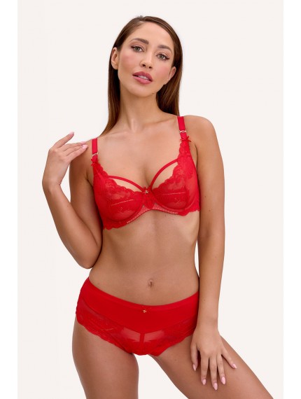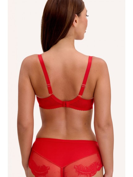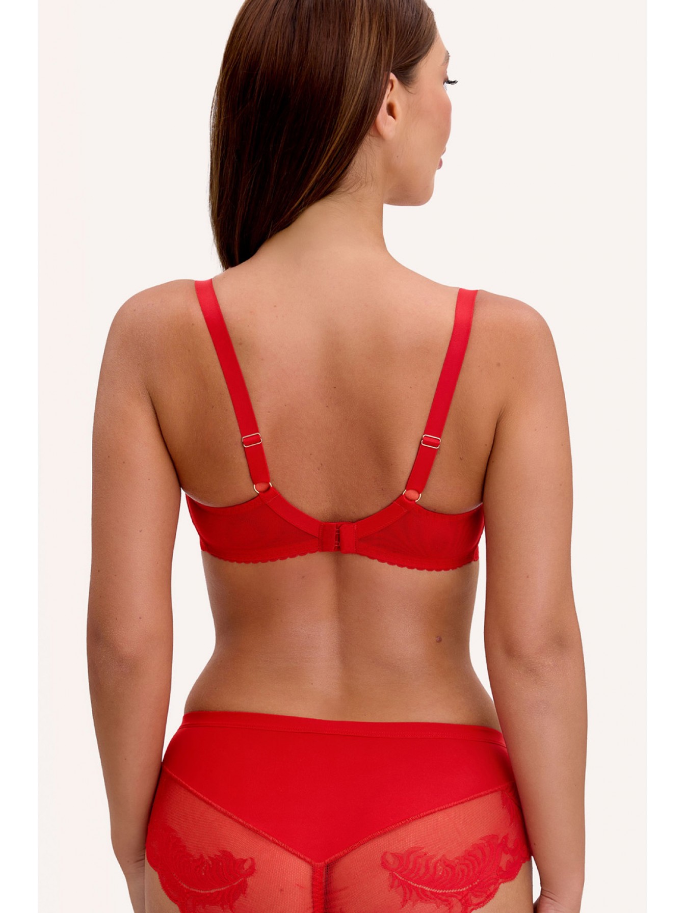 Кружевной мягкий бюстгальтер Fire Swan яркого красного оттенка. Идеально моделирует грудь, придавая ей круглую форму. Слегка диагональная линия нижней части чашки, ведущая к бретельке, позволяет идеально собрать грудь. Кружево в верхней части чаши из эластичной сеточки. Закрытый лиф, создающий полуоткрытый вырез, что обеспечивает идеальную форму большой груди. Подвижные косточки повышают комфорт использования, идеально адаптируясь к телу при каждом движении. Регулируемые лямки устойчивы к растяжению и деформации. Металлические аксессуары золотистого цвета не содержат никель.