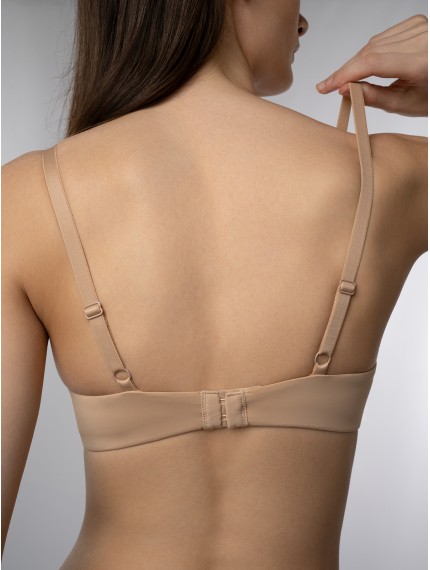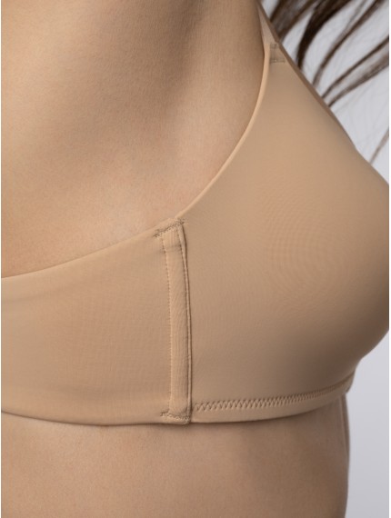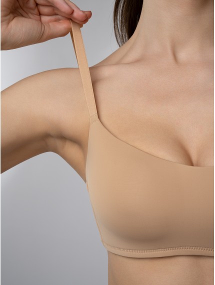 Базовый бежевый бюстгальтер-топ без косточек.Современный бежевый бюстгальтер выполнен из мягкого эластичного материала, который обеспечивает комфортную посадку и свободу движений.