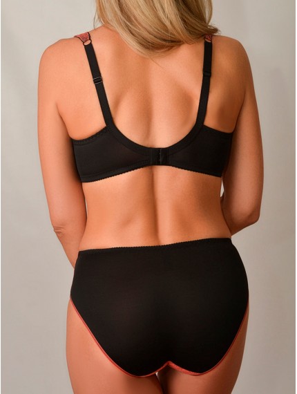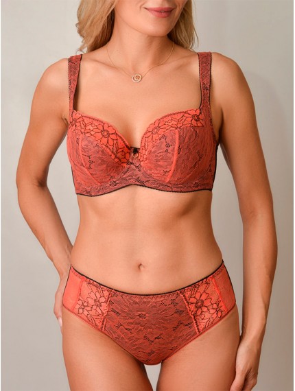 Глубокая мягкая чашка на каркасах с боковой подкройной деталью, подбирает грудь с боков и собирает к середине. Чашка круглая, сложнокройная из 4х деталей, нижняя часть из 3х деталей- лепестками, что и обеспечивает груди идеально круглую форму. Бочки и спинка из плотной ткани, внутри бюстгальтер дублирован хлопком для большего комфорта. На больших объёмах (F, G, H) и весь размер 95 - бретель шире и усилена тонким поролоном.