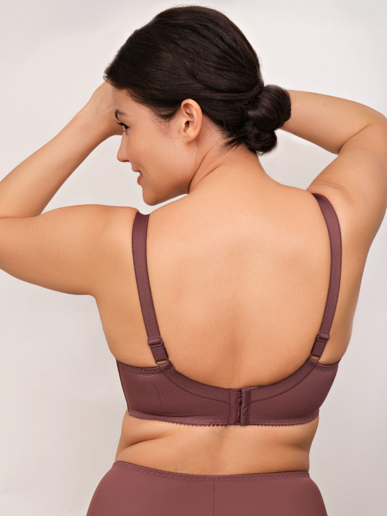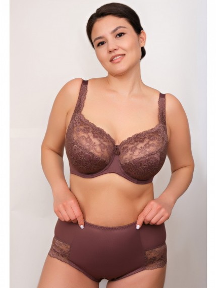 Бюстгальтер кофейного цвета, на тонком поролоне с боковыми пластинами на каркасах, выполнен из эластичного кружева и гладкой микрофибры. Чашка из четырех деталей приподнимает грудь и придаёт ей красивую округлую форму. Широкий пояс на дубляже из тонкой сеточки обеспечит дополнительное усиление и комфорт. Продуманная конструкция и дизайн модели обеспечит комфорт и подарит уверенность и чувство неотразимости.