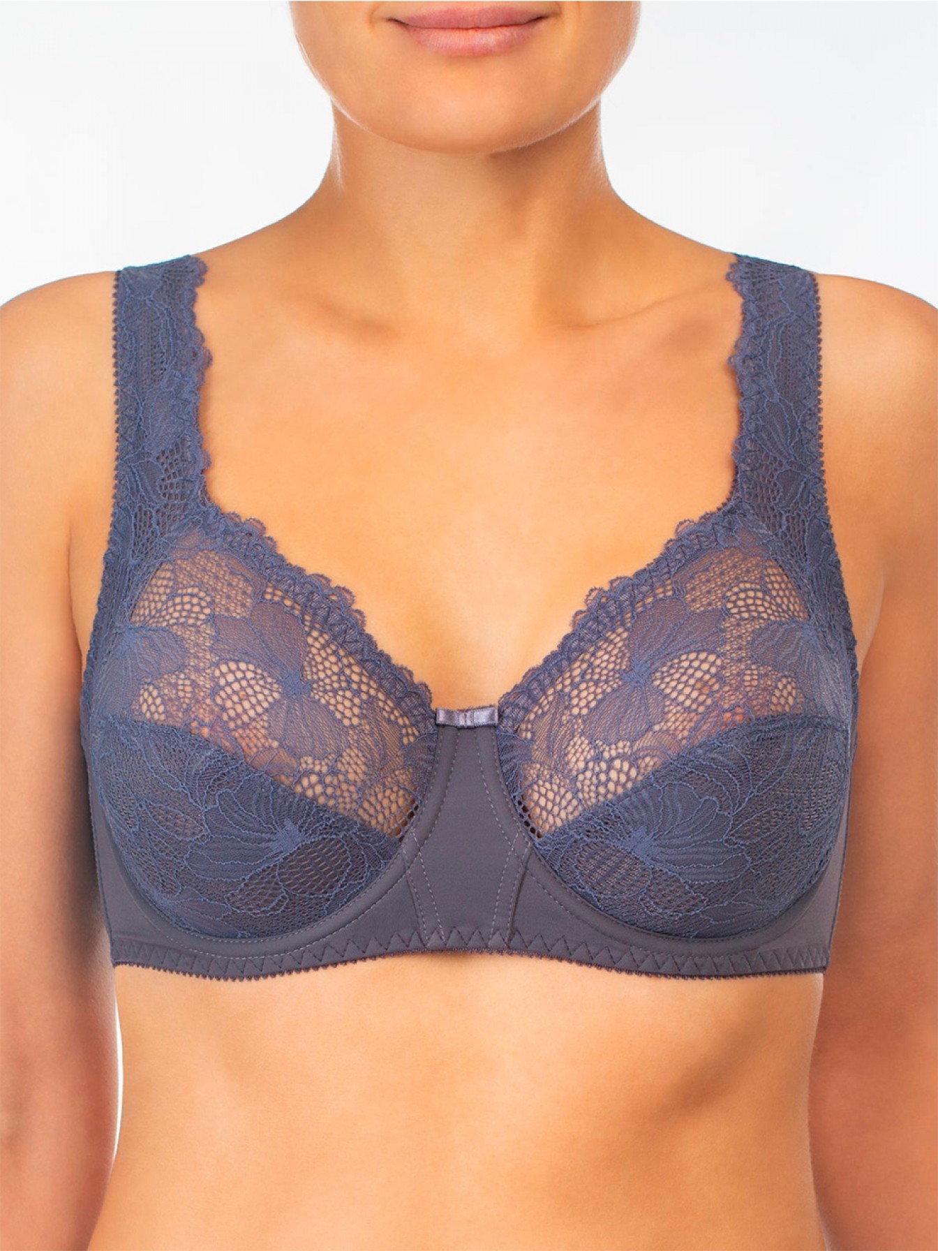 Красивый кружевной бюстгальтер закрытого типа с широкими бретелями. Мягкая чашка на каркасах. Бочки и спинка из плотной ткани, внутри бюстгальтер дублирован хлопком для большего комфорта. Эта модель на чашки объёма C, D, E. На большие объёмы F, G, H - такая же модель. с усиленными бретелями - 1213.