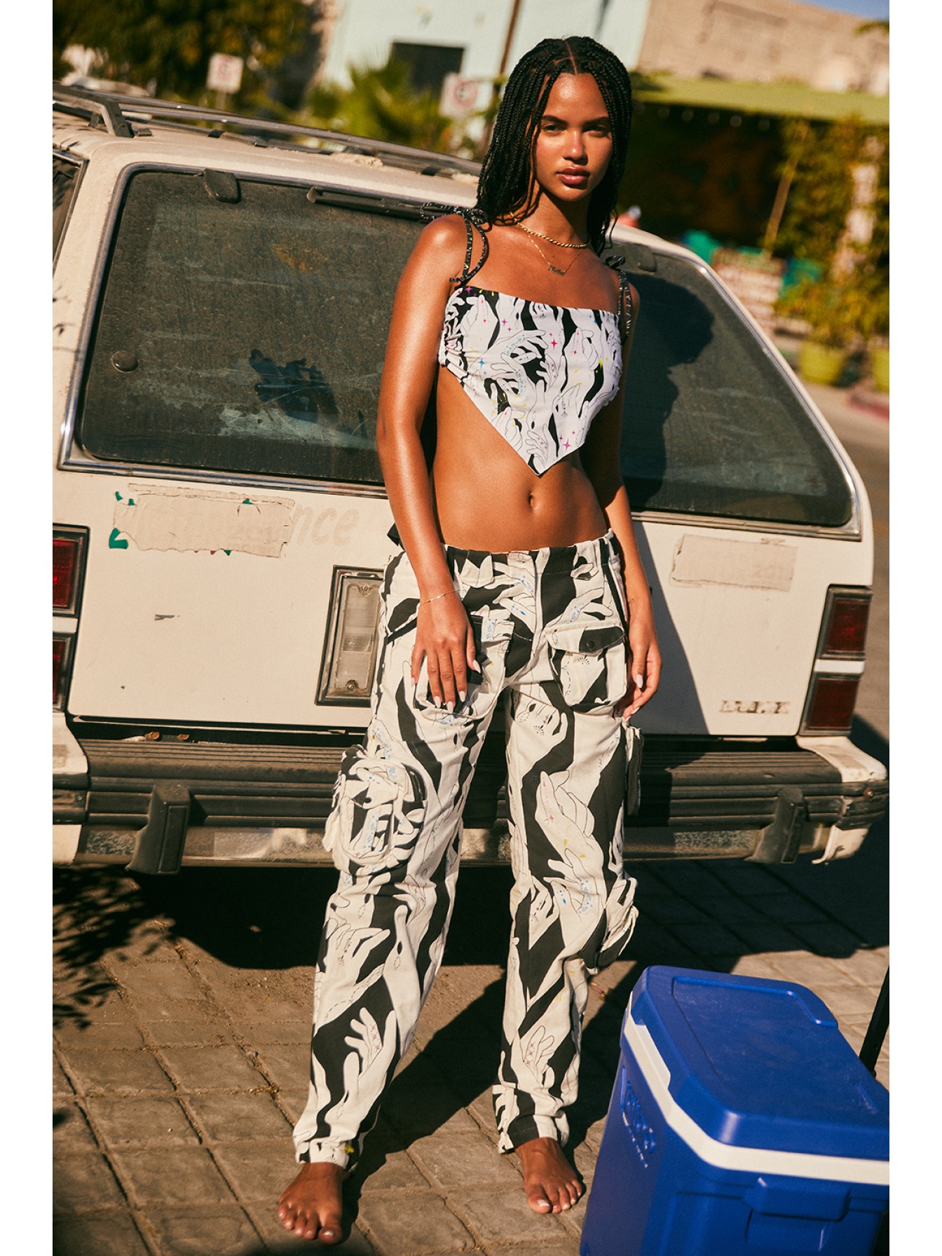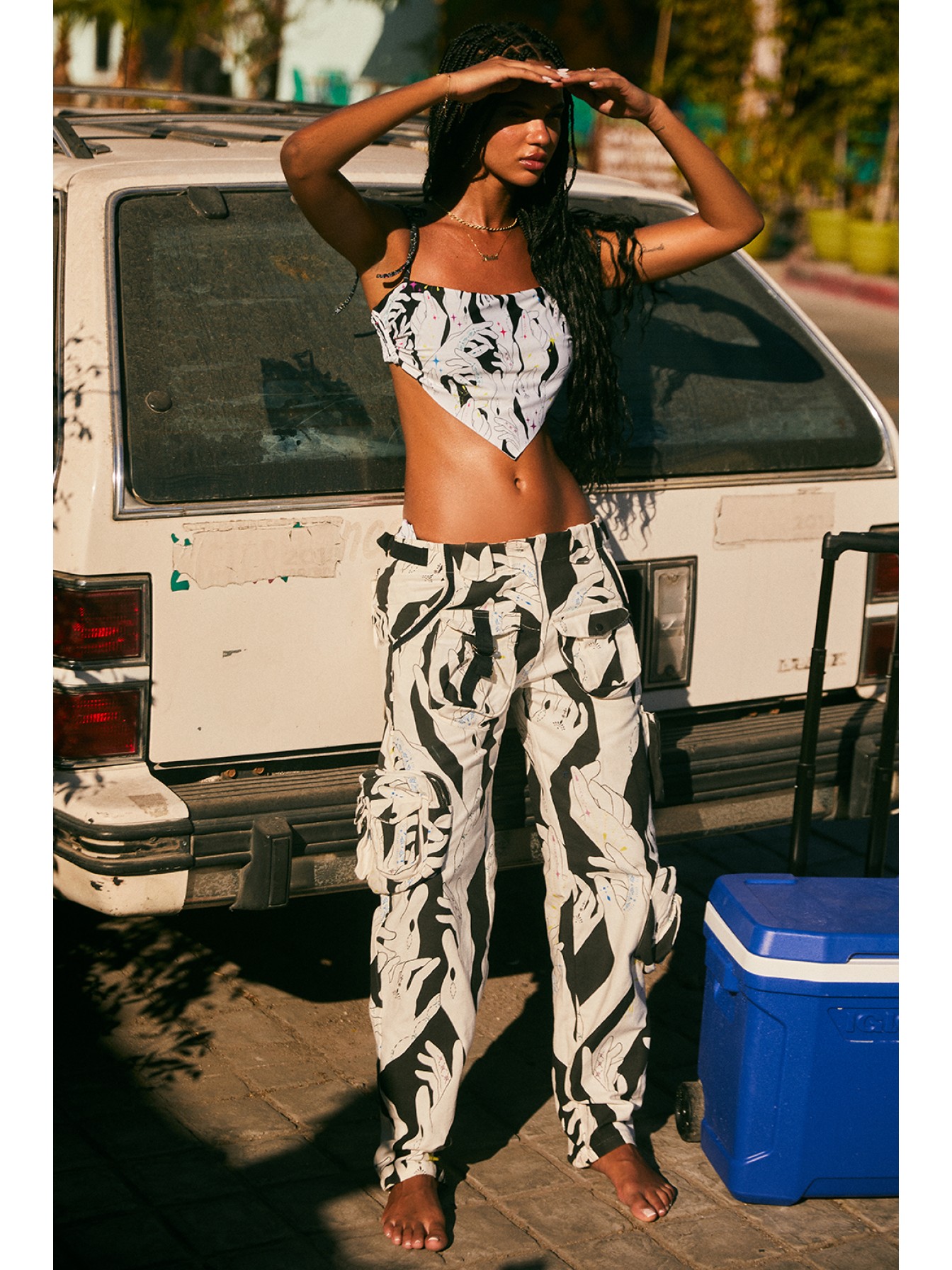 Пляжные брюки свободного кроя с уникальным дизайнерским принтом и с карманами. Идеальный вариант на лето для прогулки или на пляж.