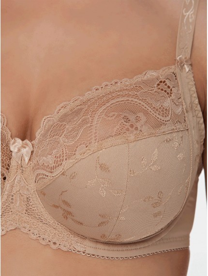 Бюстгальтер кружевной на косточках с T-образным швом и боковой корректирующей деталью для отличной поддержки любой груди. Выполнен из трикотажного полотна и кружева. Нарядная модная модель на каждый день.
