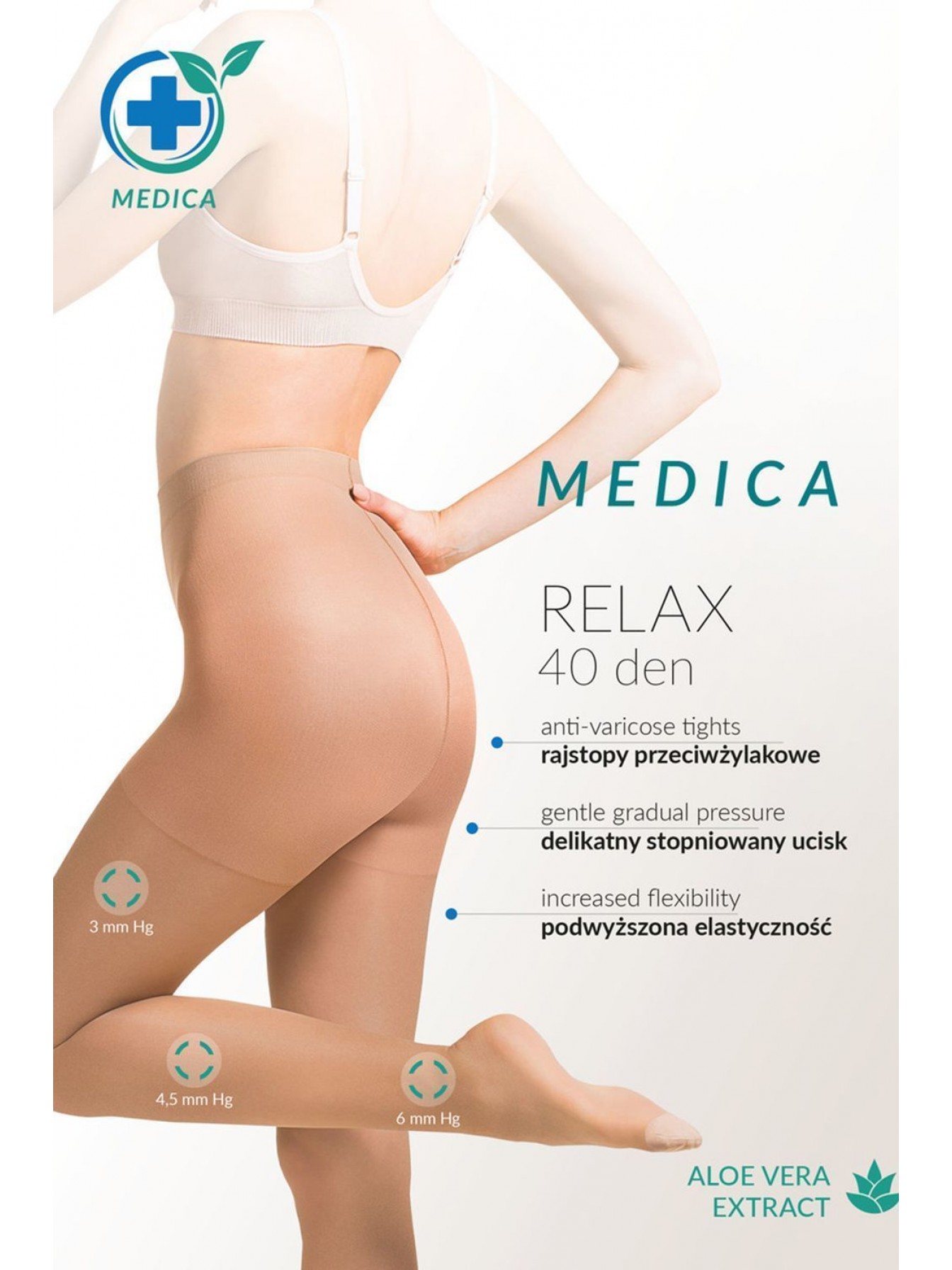 Телесные колготки с антицеллюлитным действием и с экстрактом Алоэ Вера Medica Relax 40 den