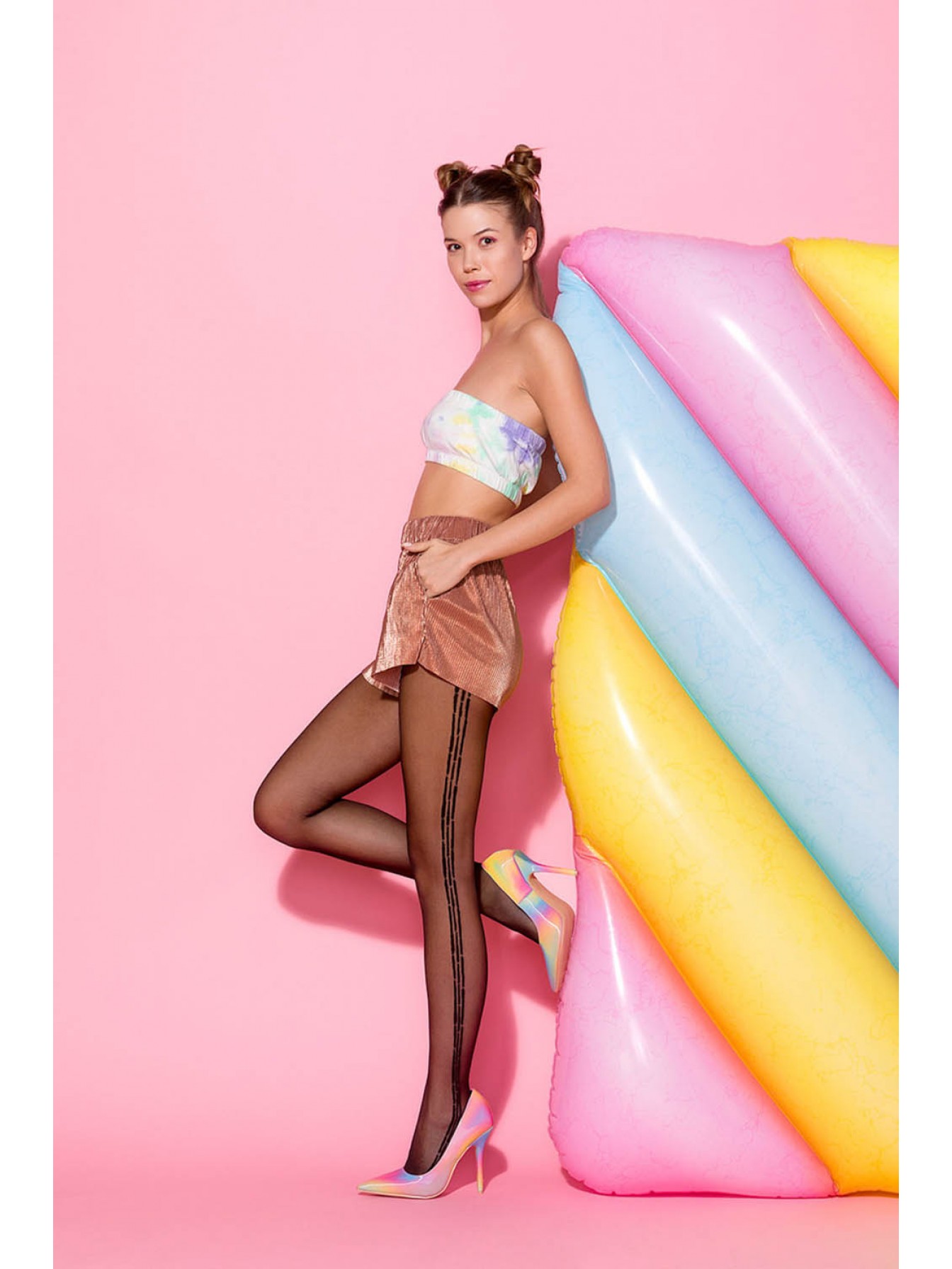 Черные колготки Kaya с оригинальными полосками на внешней стороне ног. Невидимое усиление на пальцах и хлопковая ластовица с плоским швом гарантируют удобство и комфорт использования.