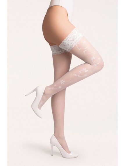 Белые чулки Caroline 15 den с резинкой шириной 9 см на силиконовой основе