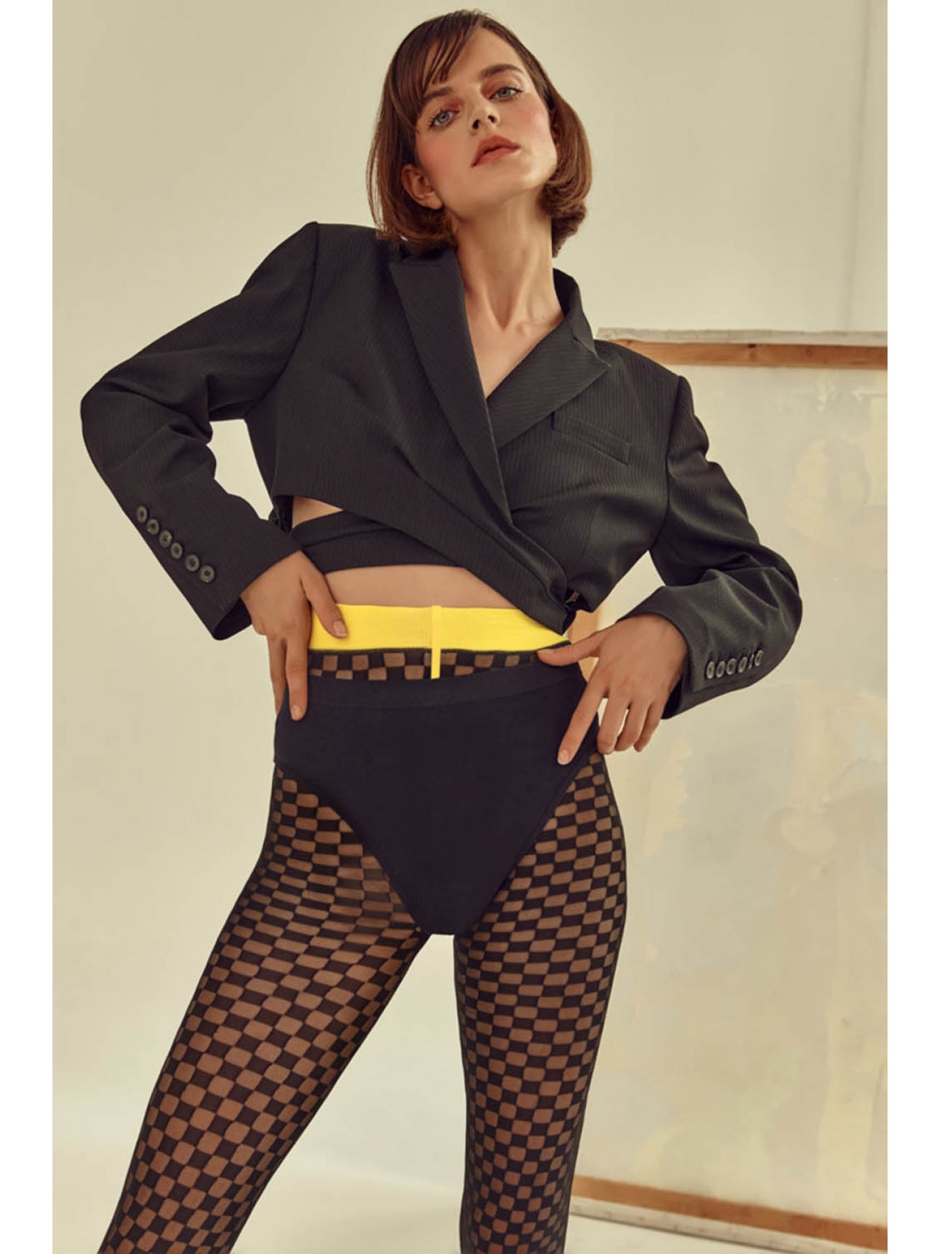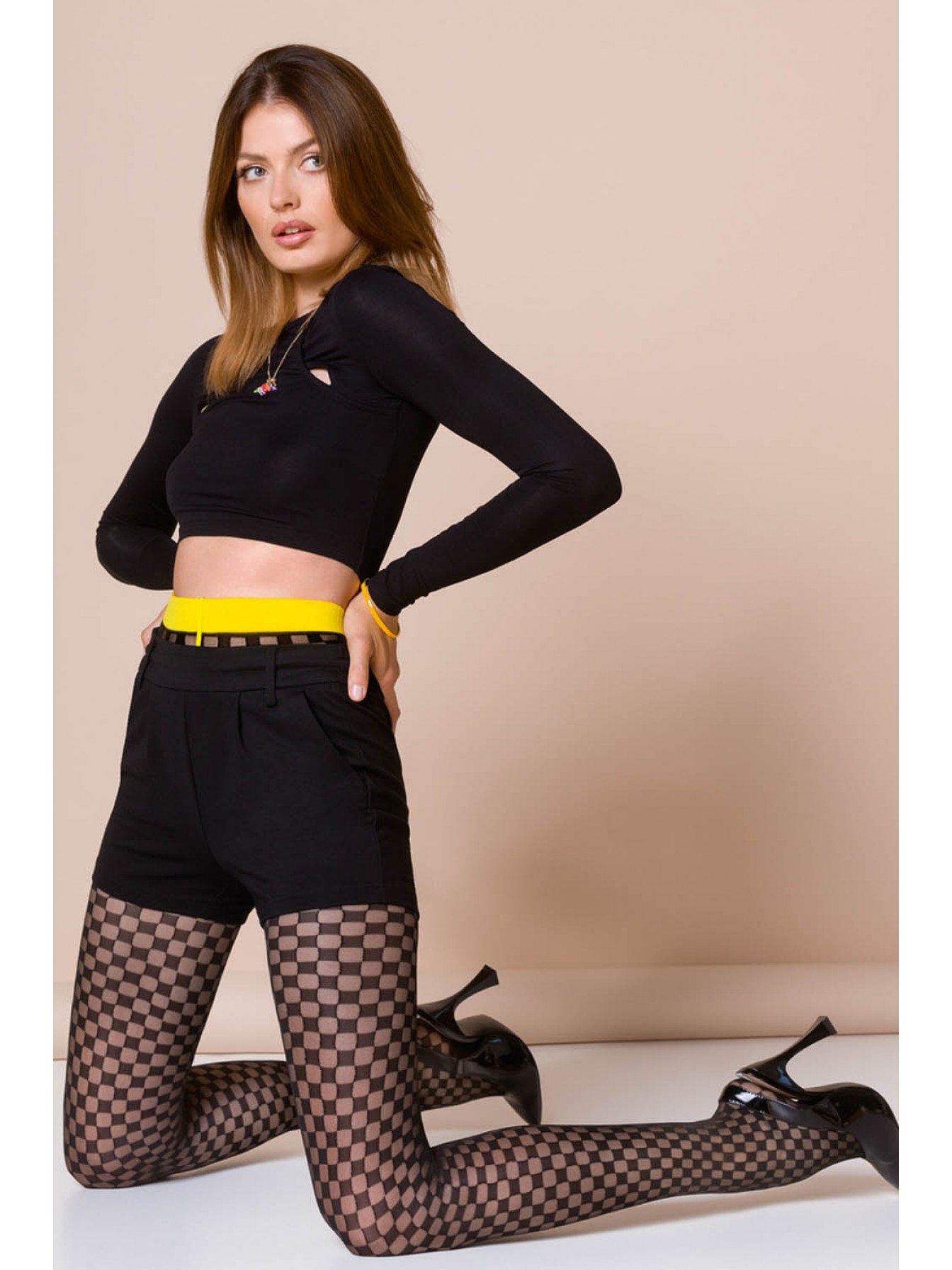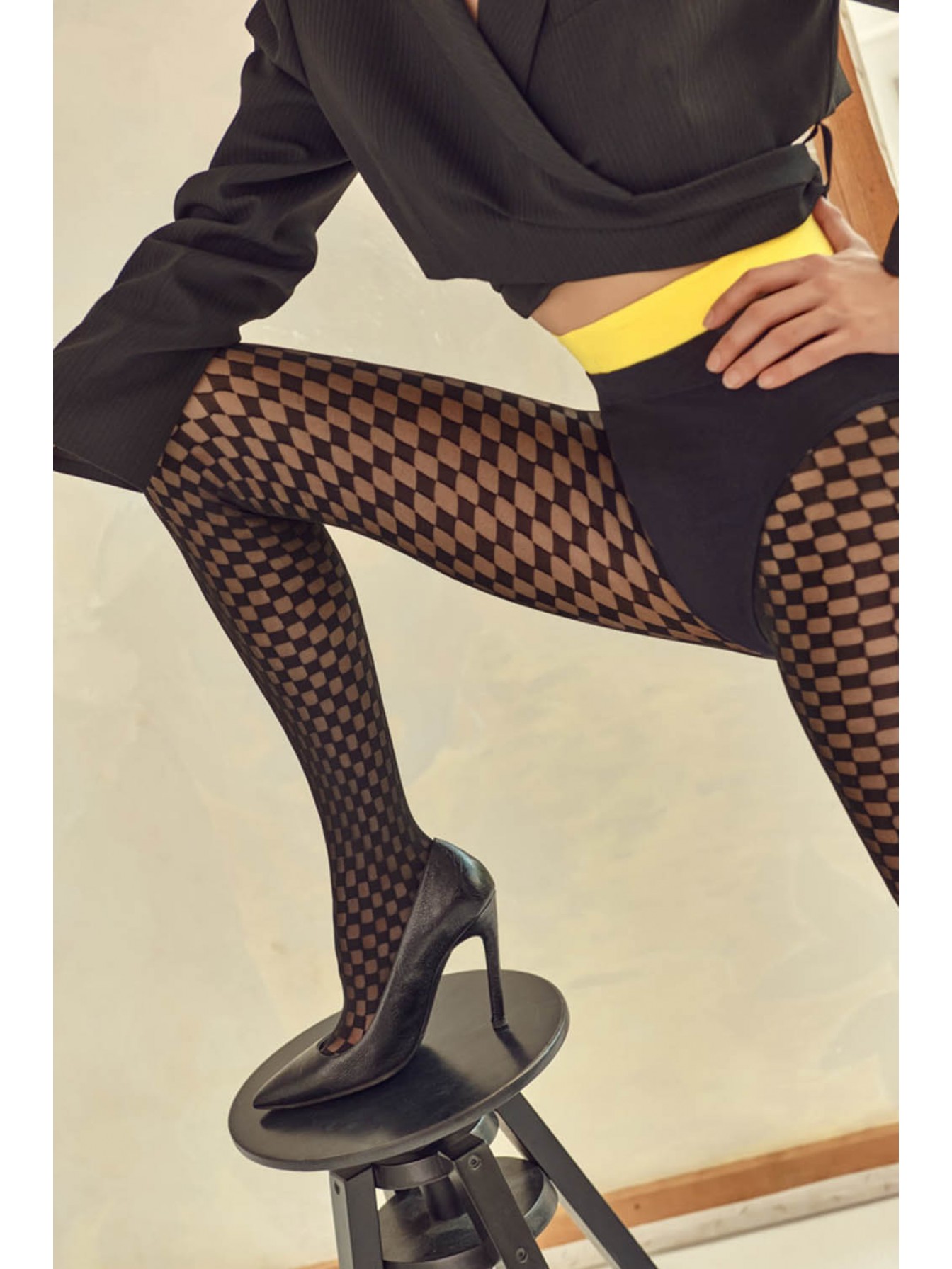 Колготки женские Beth 30 den украшают ноги шахматным узором из более светлых и темных черных квадратов. Ластовица хлопковая. Широкая яркая резинка на талии привлекает внимание своим дизайном. Тонкие колготки в клетку понравятся дамам, которые интересуются модой и любят не только следовать, но и задавать тенденции.