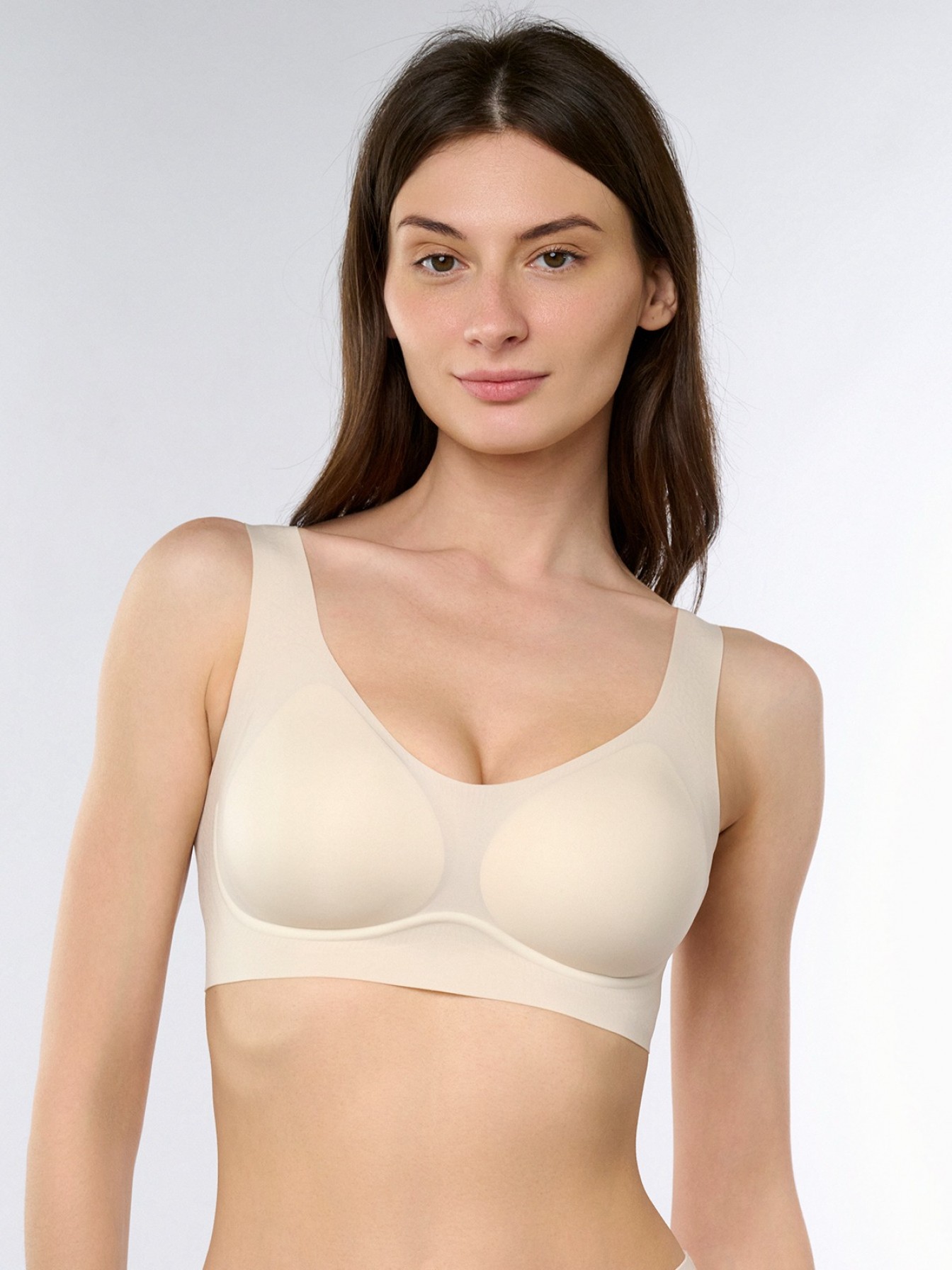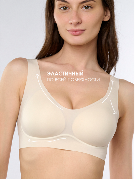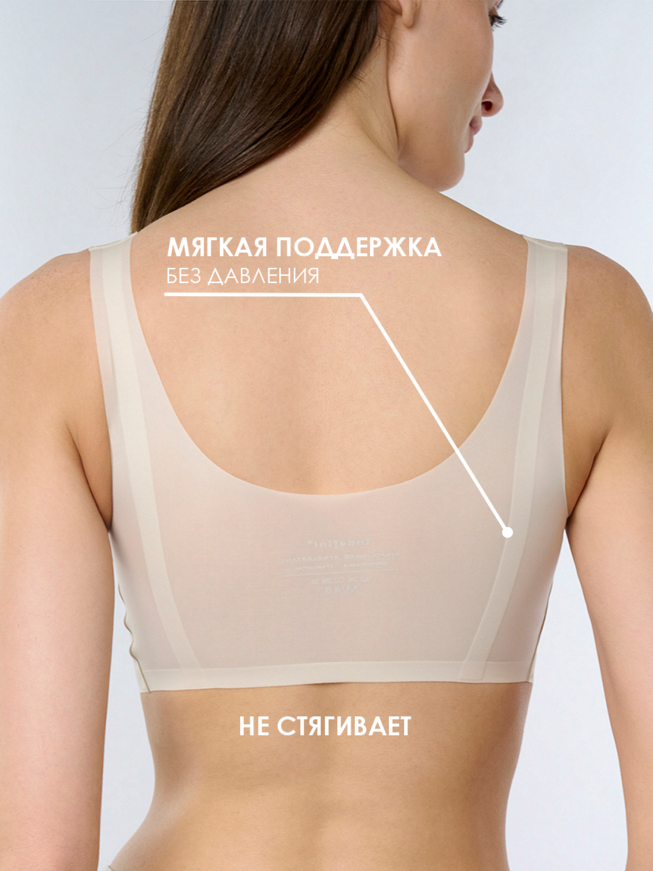 Белый бюстгальтер-топ без косточек.Современный белый бюстгальтер выполнен из мягкого эластичного материала, обеспечивающего комфортную посадку и свободу движений. Модель не имеет каркасных косточек и застёжек, что делает её максимально удобной для повседневной носки.