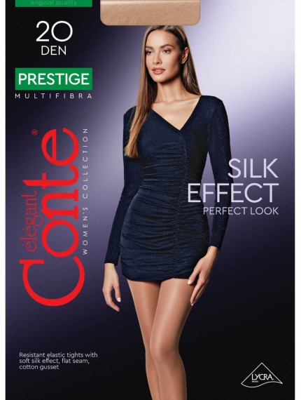 Прозрачные эластичные колготки PRESTIGE графитового цвета с эффектом «нежный шелк» создают особое ощущение мягкости. Колготки связаны из мультифиламентных нитей, благодаря строению которых полотно получается ультрапрочным, гладким, с легким глянцевым блеском. Ненавязчивое, благородное сияние полотна делает ноги безупречно гладкими и стройными.