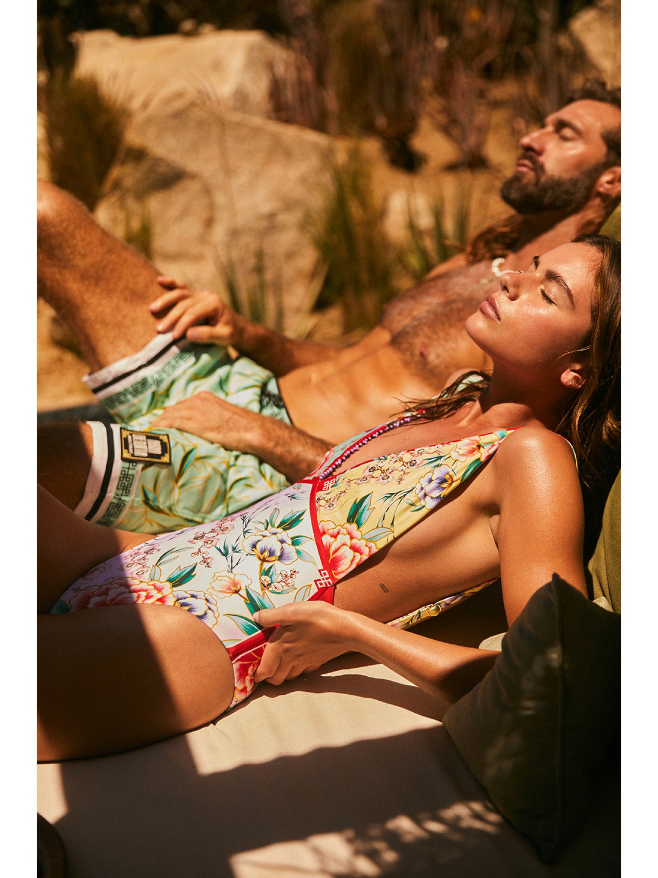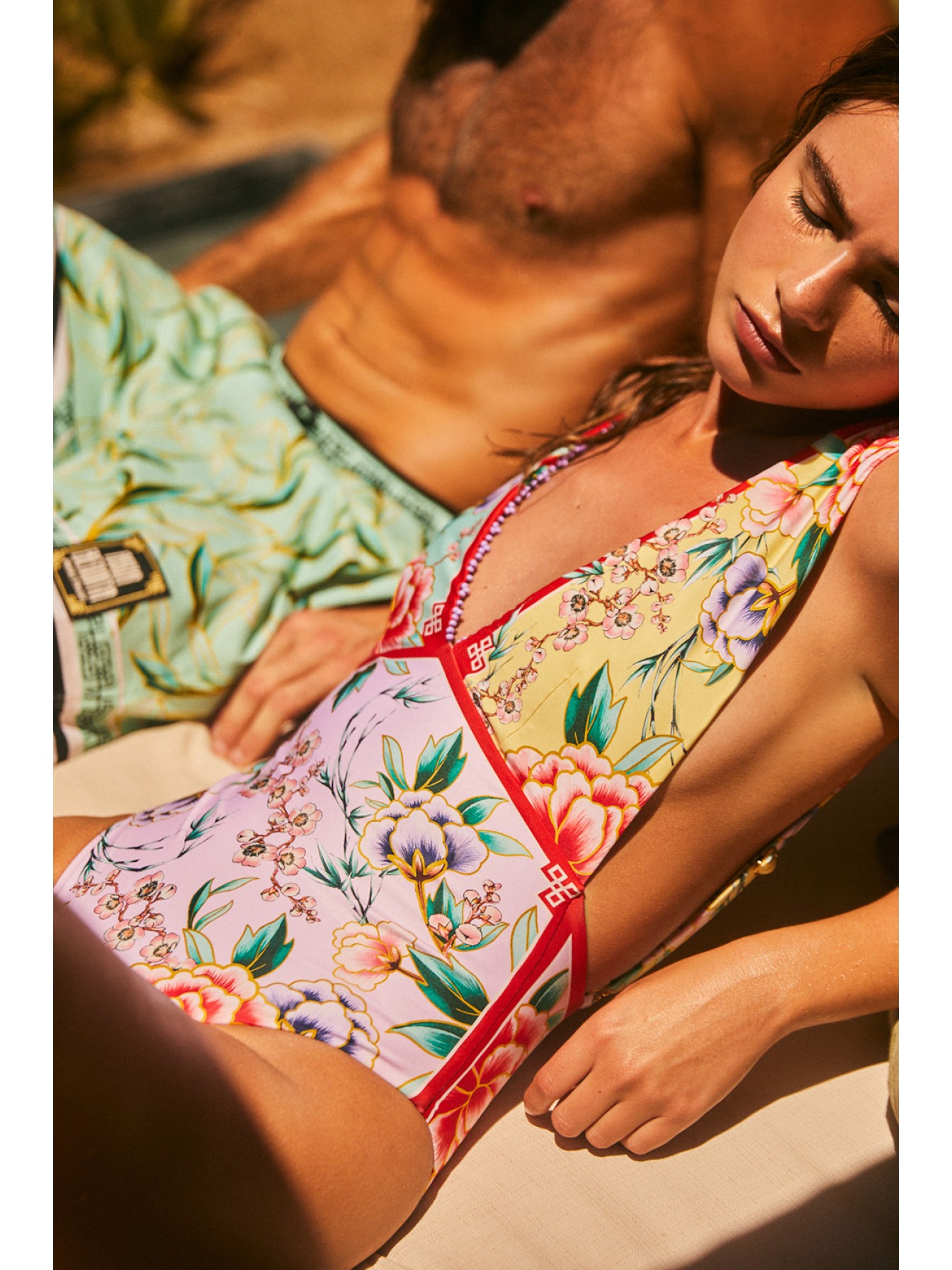 Слитный купальник Tulipa с глубоким v-образным вырезом. Выполнен из люксовой ткани, с тактильным эффектом гладкого и легкого шелка, которая быстро сохнет и сохраняет цвет.