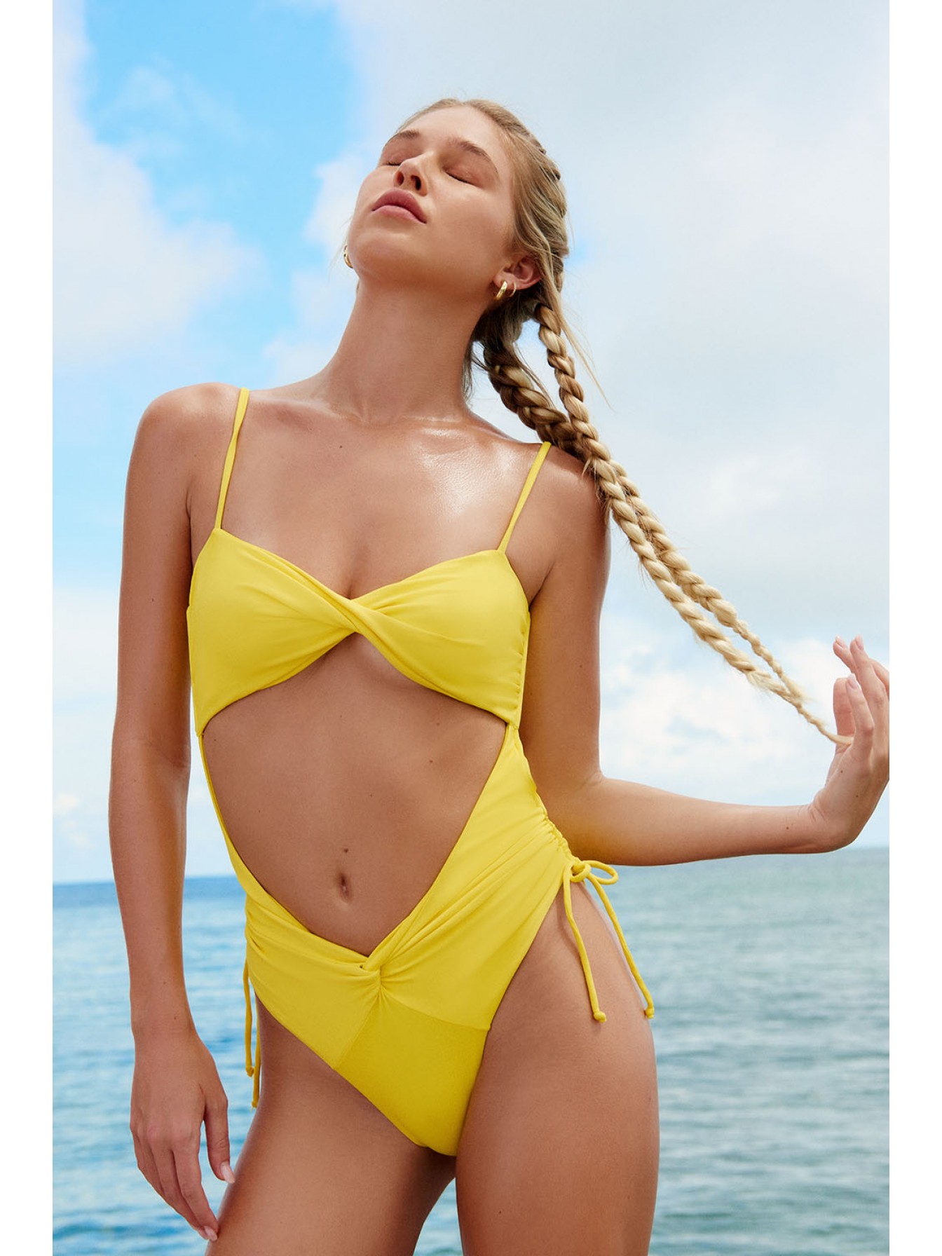 Слитный купальник с широким вырезами. Модное и асимметричное изделие с уникальными деталями для создания эксклюзивного образа. Выполнен из люксовой ткани с тактильным эффектом гладкого и легкого шелка, которая быстро сохнет и сохраняет цвет.