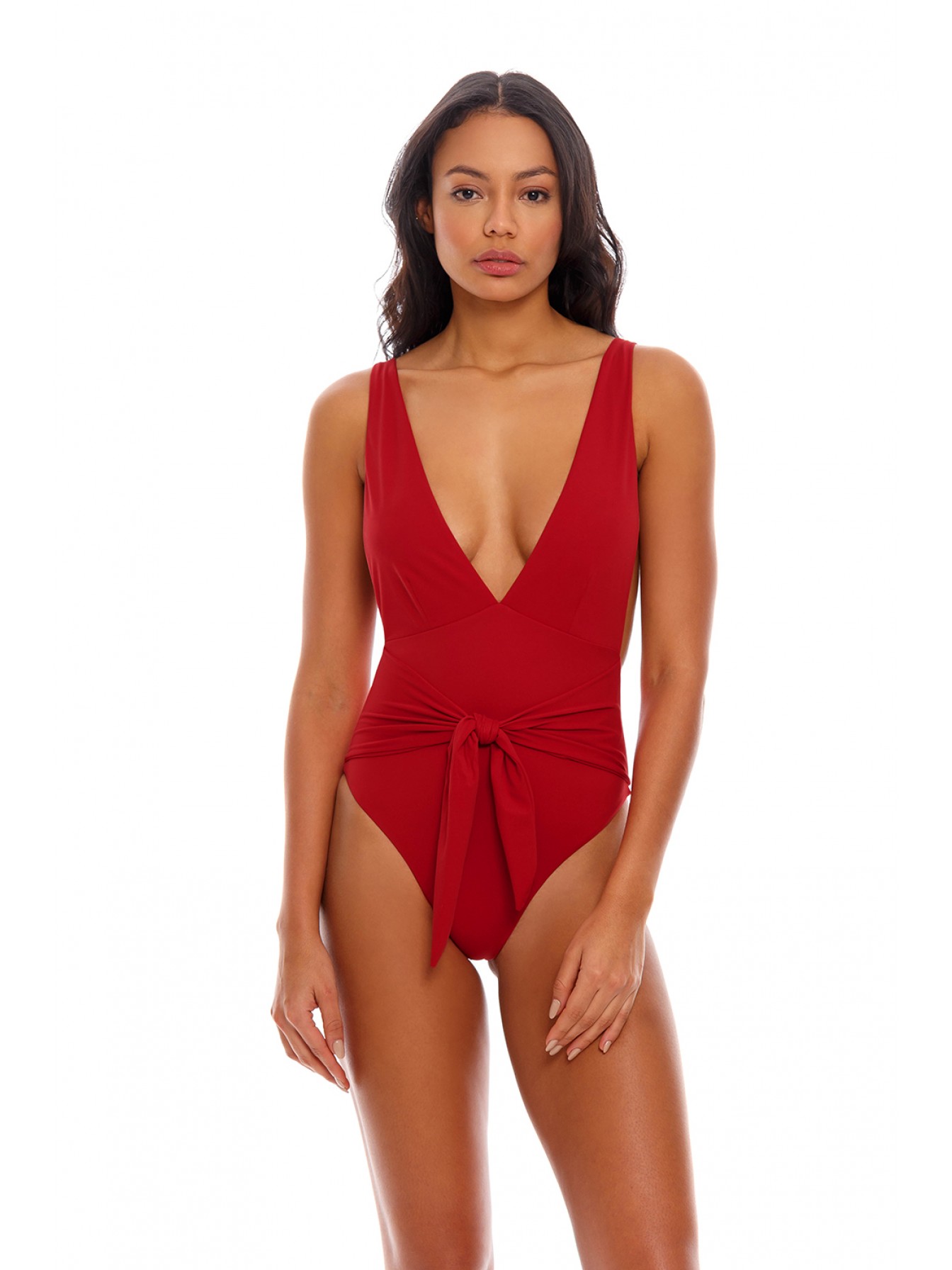 Слитный купальник с V-образным декольте и стильными широкими регулируемыми бретелями на спине. Украшен элегантным поясом в виде банта. Выполнен из люксовой ткани, с тактильным эффектом гладкого и легкого шелка, которая быстро сохнет и сохраняет цвет.