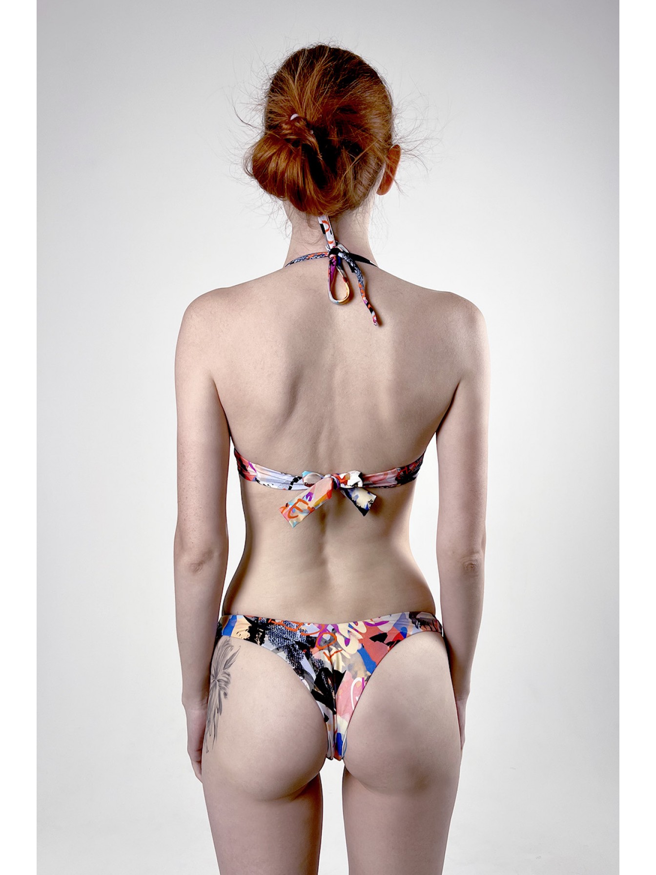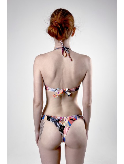 Раздельный купальник Rosalia с ярким принтом. Лиф с поролоновыми чашками, без косточек, завязывается за шеей и на спине для достижения лучшей посадки. Плавки-галочки с подкладкой.