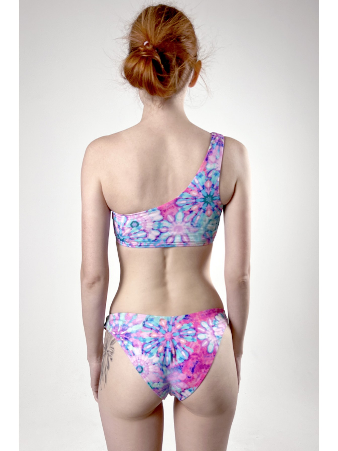 Раздельный купальник Lili с ярким принтом. Топ на одно плечо с поролоновыми съемными вкладышами, без косточек, с боковыми косточками. Плавки-галочки с подкладкой.