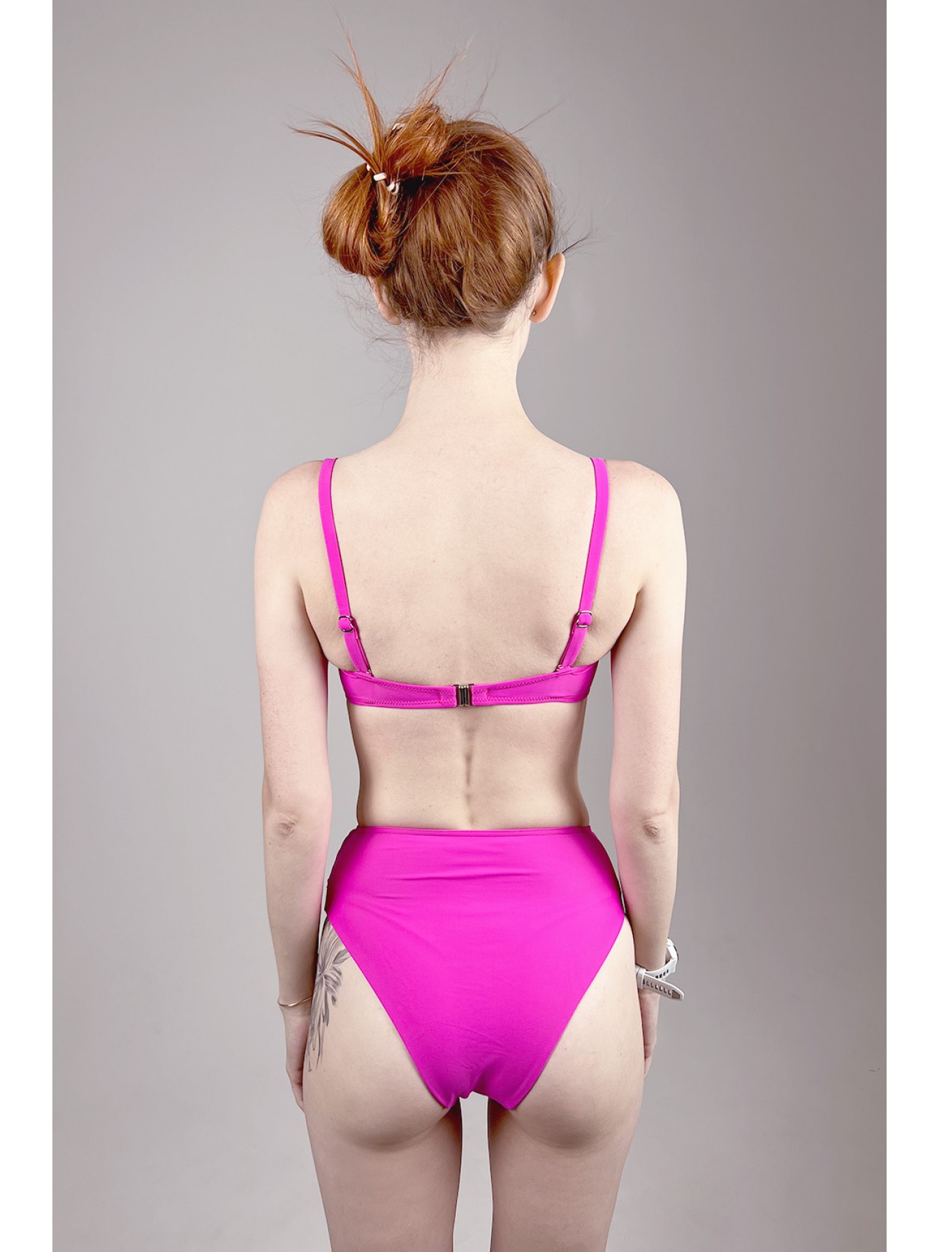 Раздельный купальник Aurora розового цвета. Лиф с боковыми косточками, съемные бретели регулируются по длине. Плавки высокой посадки.