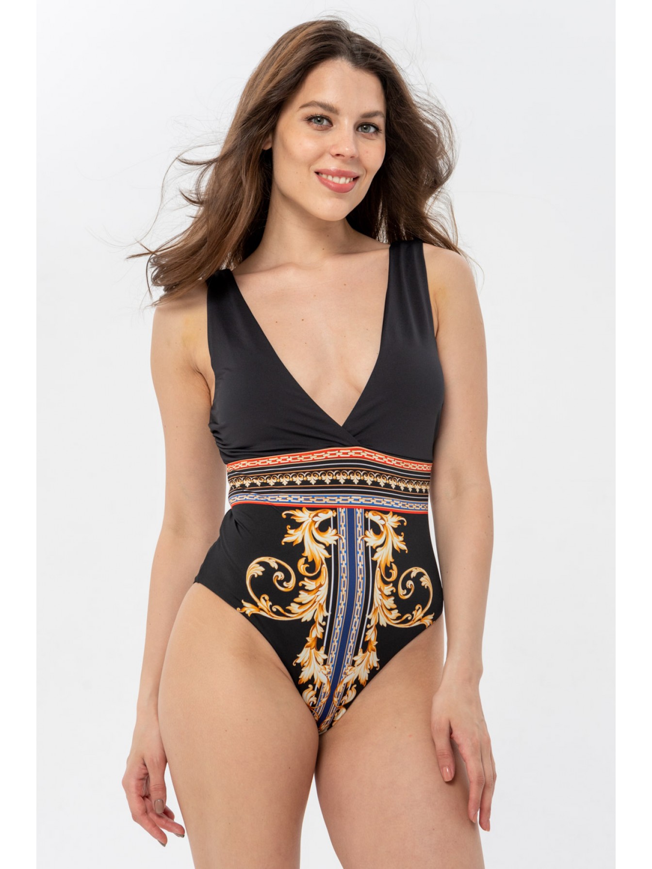 Слитный купальник из коллекции Elegant Cruise оформлен оригинальным принтом спереди. Лиф с мягкими плавающими чашками и с широкими комфортными бретелями. Декольте и спинку украшают глубокие вырезы.