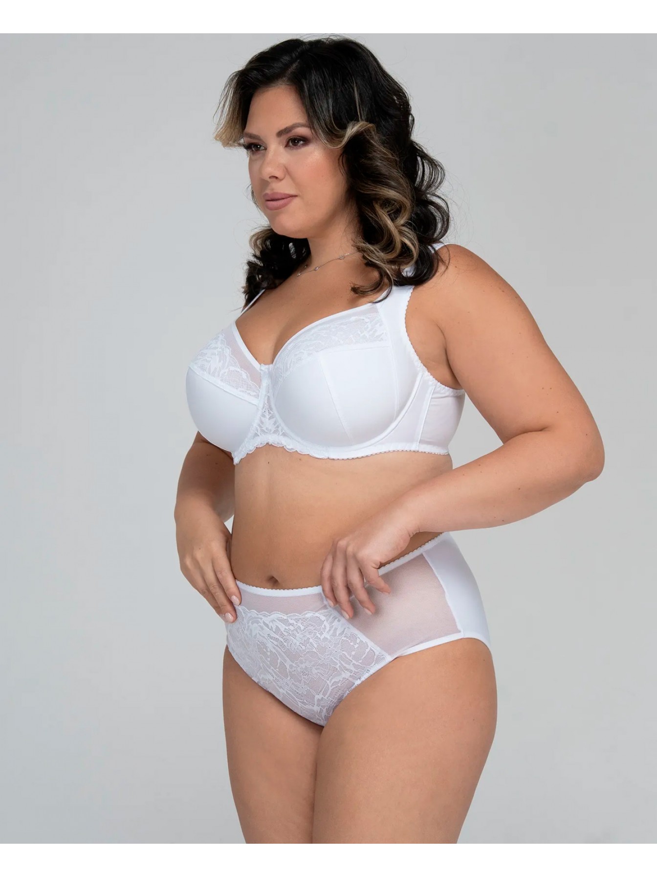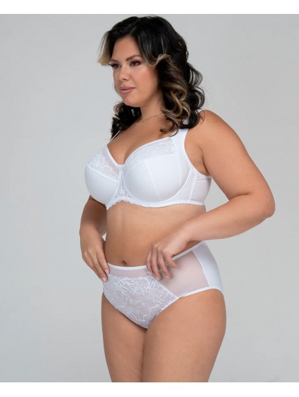 Красивый белый бюстгальтер на большую грудь с боковой поддержкой. Мягкая чашка из неэластичного функционального полотна. Подкладка чашек выполнена из хлопкового полотна. Бочок пояса - два слоя эластичной сетки. Удобная и современная модель.