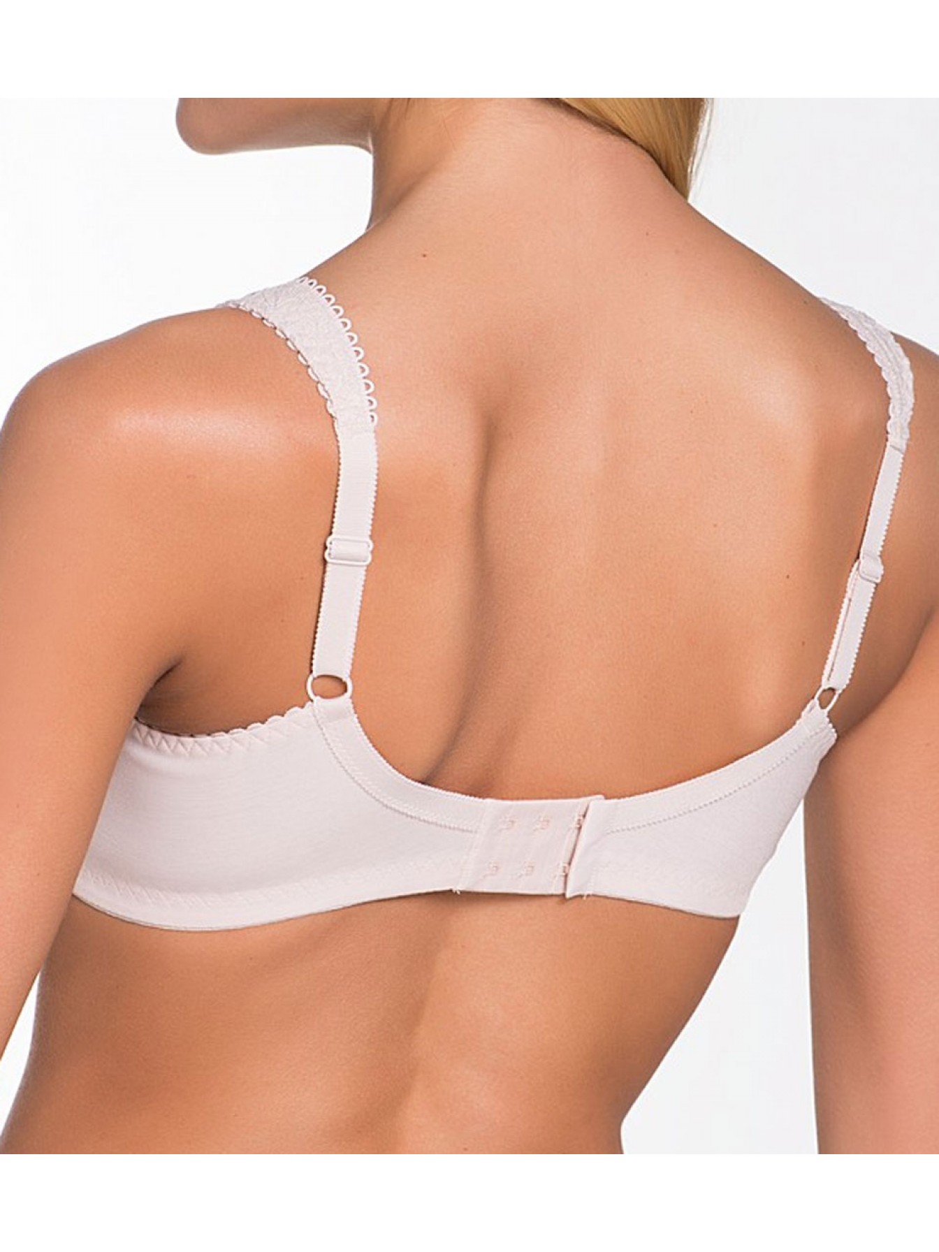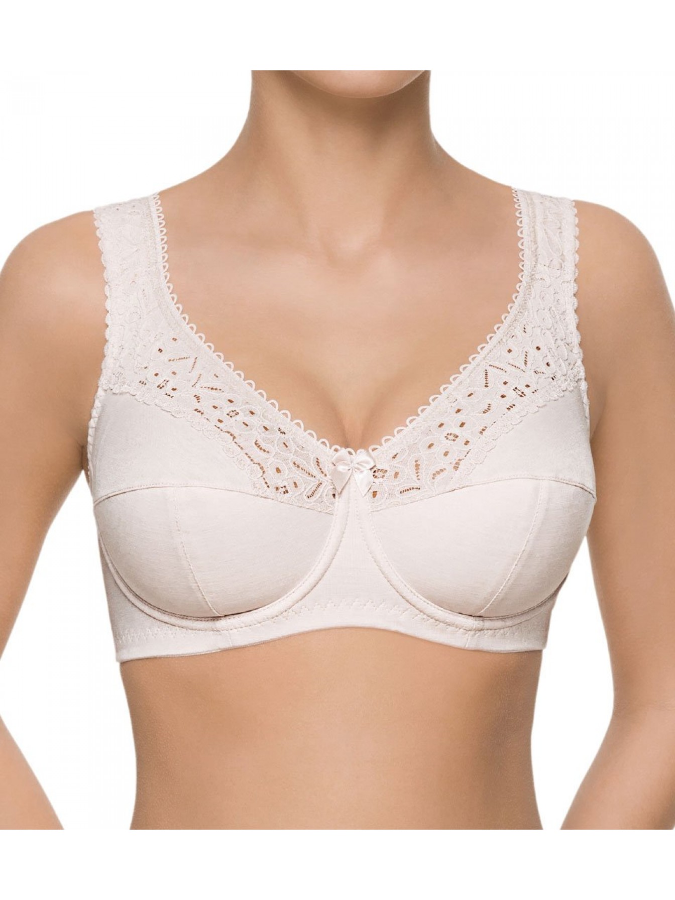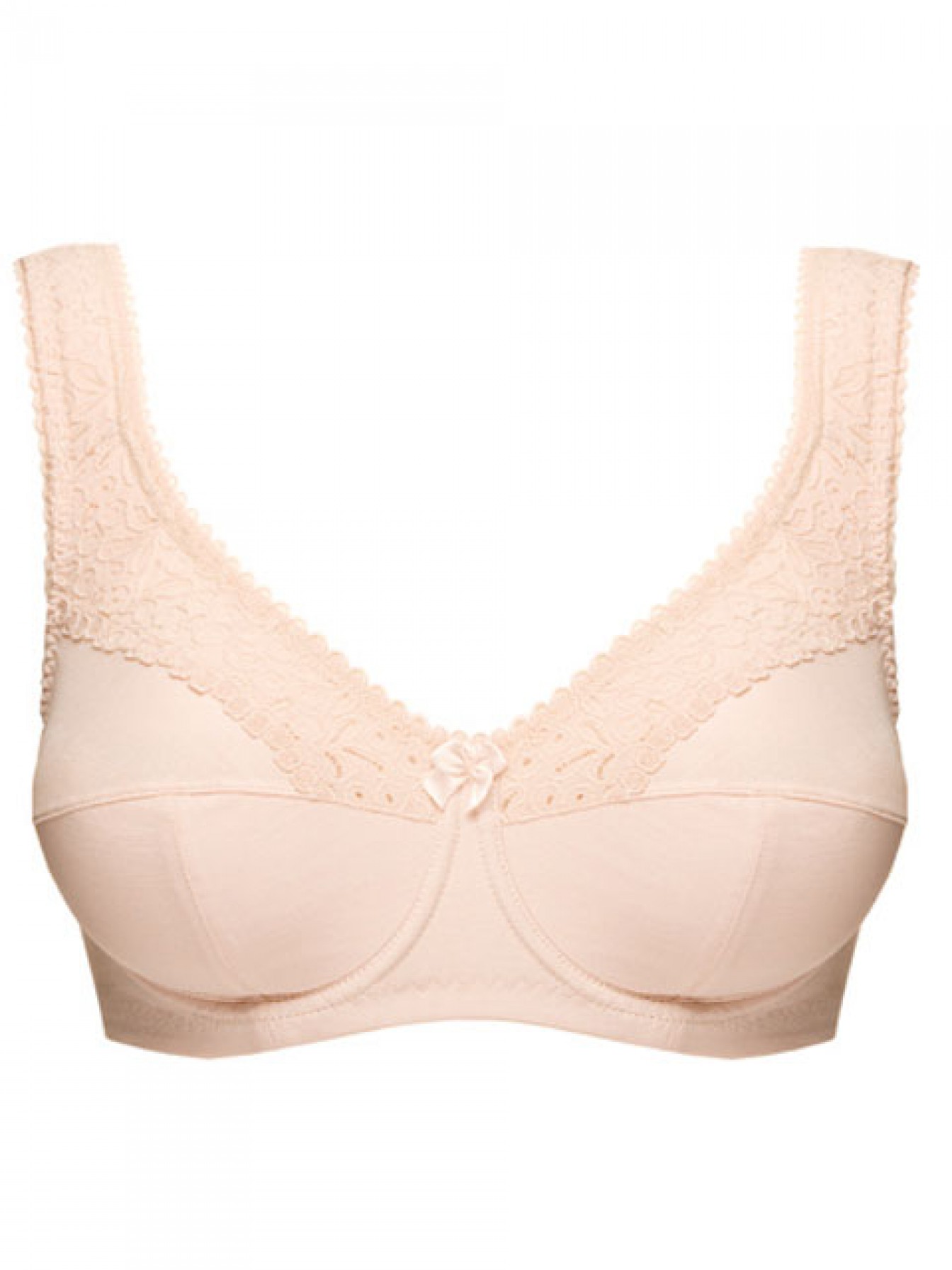 Самая, пожалуй, комфортная и удачная классическая модель с широкой лямкой. Закрытая чашка - "корзинка", Т-образный шов, сложная внутренняя корнструкция чашки, широкая дуга косточки и мягкие очень широкие бретели обеспечивают непревзойденный комфорт для повседневного использования. Гипоаллергенная ткань с хлопковой отделкой позволяют коже "дышать". Лучший выбор для ежедневного использования. Для чашек F,G,H - приобретайте модель 02150