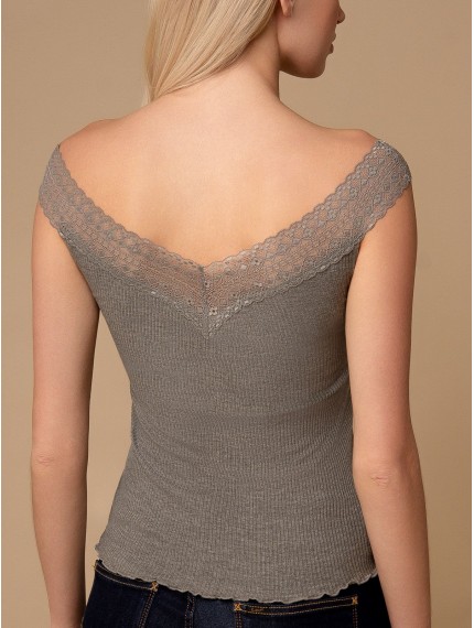 Женская майка в рубчик 3246TDJ бренда Indefini – стильное и универсальное дополнение к вашему гардеробу. Изготовленная из мягкого хлопка и лёгкого модала, она приятно ощущается на коже и обеспечивает комфорт в течение всего дня. Оригинальная текстура в рубчик придаёт майке современный вид и элегантно подчеркивает линии фигуры, создавая эффектный силуэт. Кружевные рукава добавляют романтическую нотку и утончённость, что делает эту майку подходящей для любого наряда. Майка Indefini отлично подходит как для повседневной носки, так и для торжественных событий, придавая стильный и уверенный вид в любых ситуациях.
