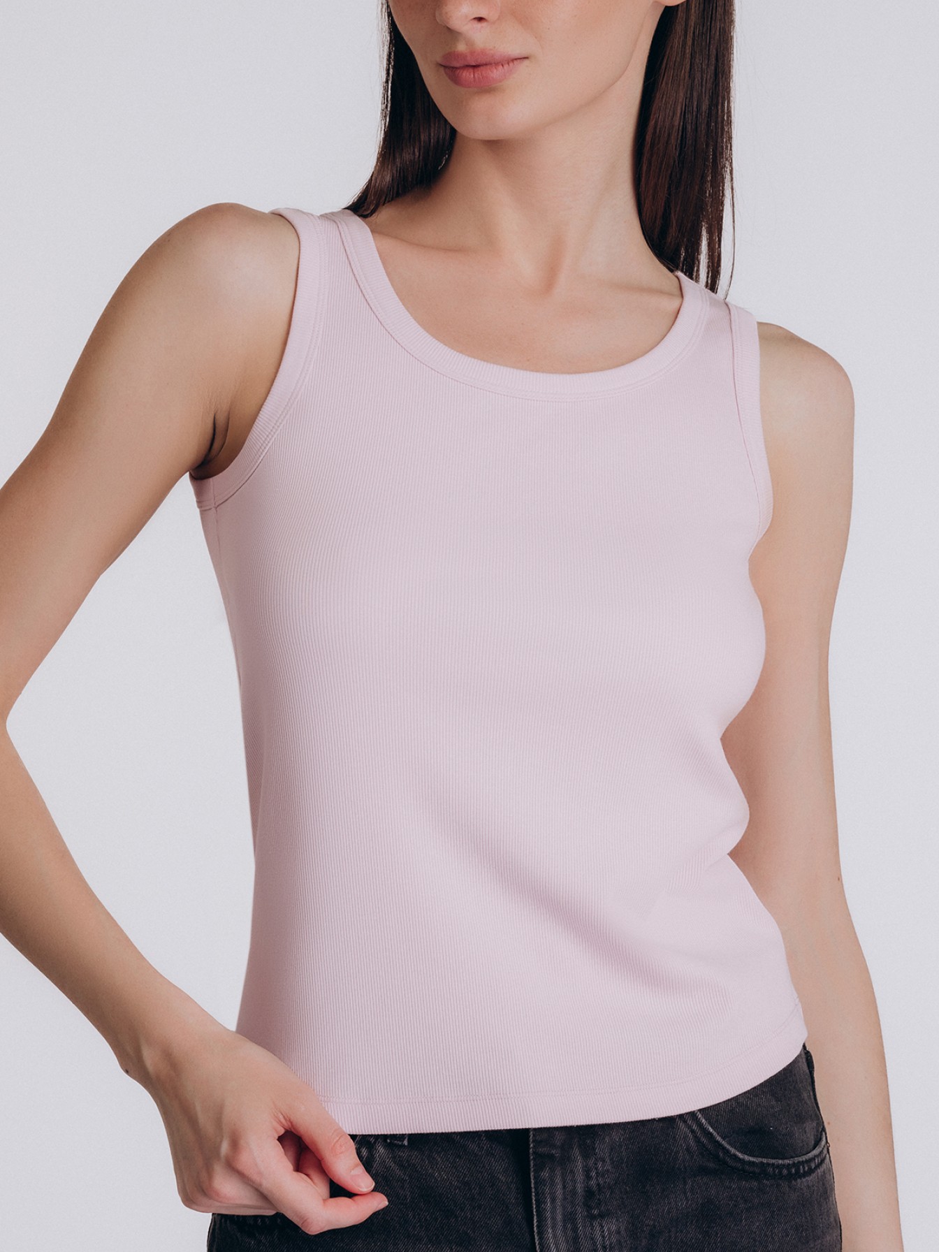 Классическая майка из комбинированного материала (хлопок/вискоза) с мелким рубчиком. Нежно-розовый оттенок создает сдержанный и элегантный образ. Универсальная модель стандартного кроя подходит для повседневной носки и комбинирования с различными элементами гардероба.