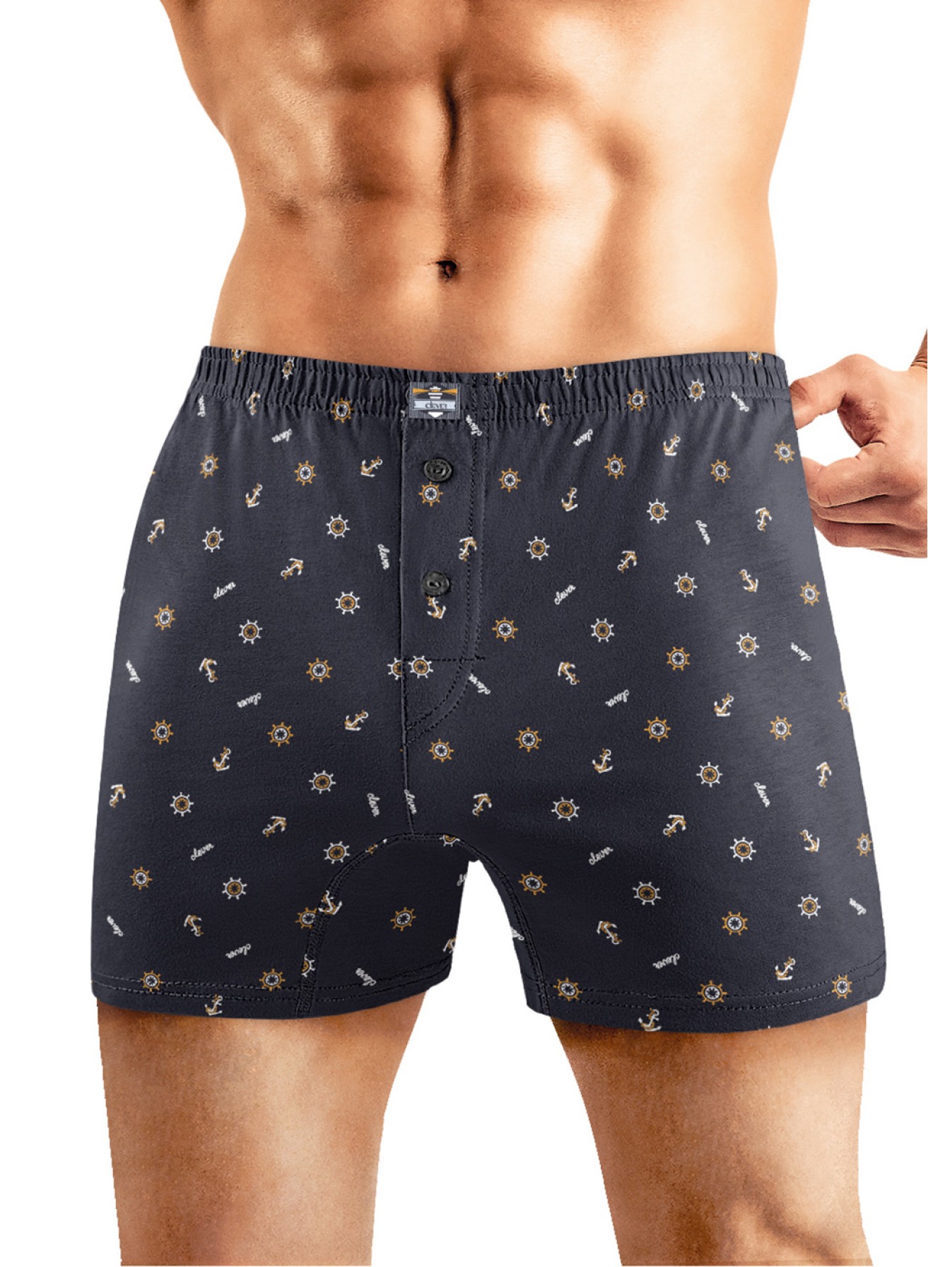 Боксеры комфортной посадки выполнены из оригинального полотна в мелкую графику. Трусы дополнены пуговицами и иммиджевым логотипом.