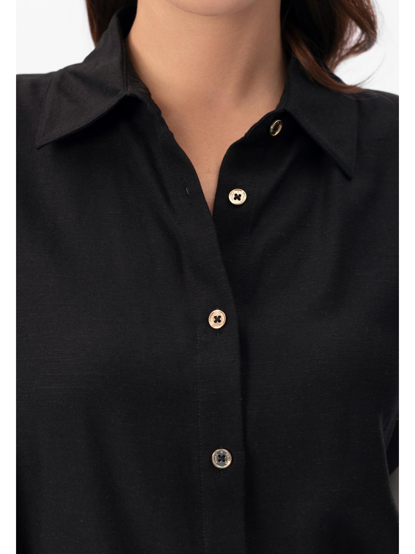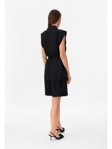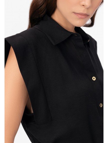 Рубашка изо льна и вискозы без рукавов, на пуговицах. Боковые разрезы. Стояче-отложной воротник. Съемный пояс.
