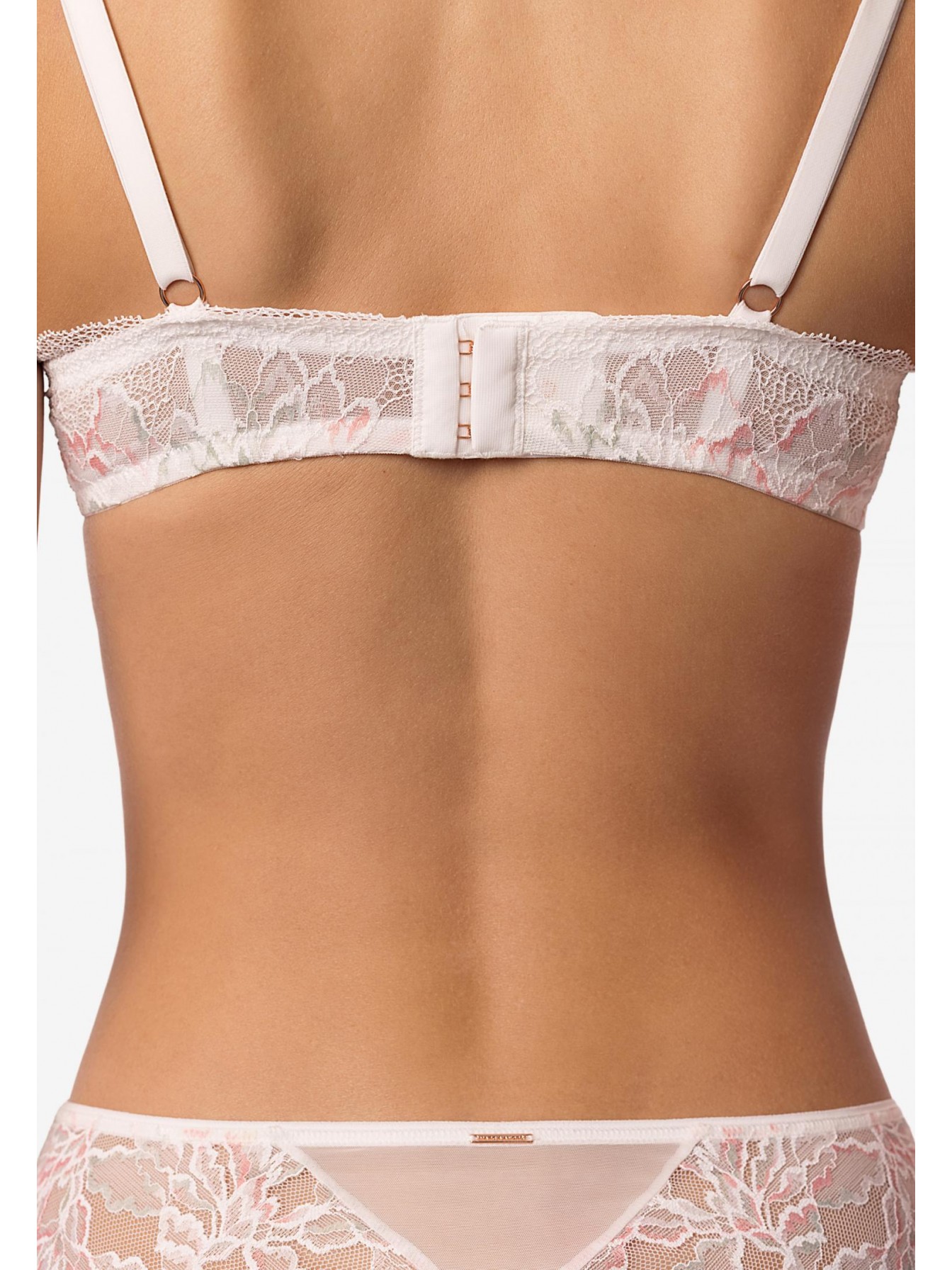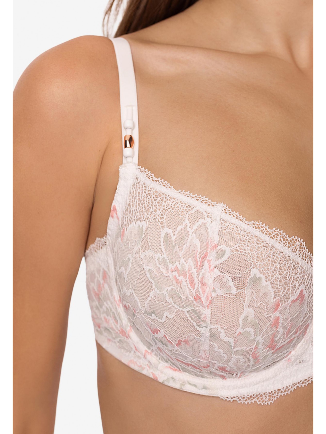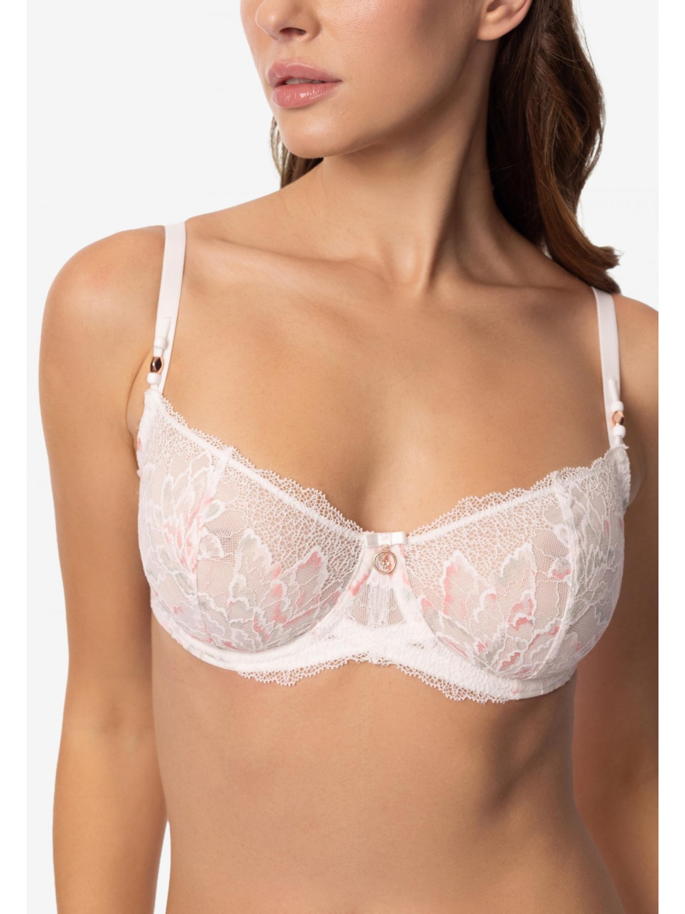 Бюстгальтер с мягкой чашкой на каркасной поддержке. Чашки выполнены из полупрозрачной сетки и декорированы кружевом. Кружевной стан на подкладке из сетки.