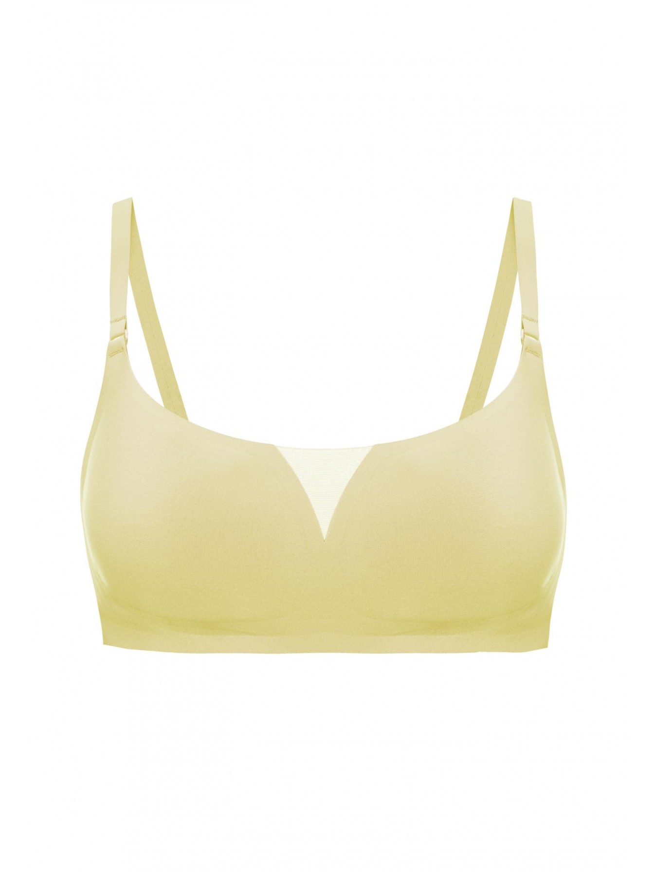 Бесшовный бескаркасный тонкий бюстгальтер. Ощущение абсолютного комфорта. Тонкие съемные корректоры. Спереди между чашек декоративная вставка из сетки. Бюстгальтер выполнен из одной цельной детали. Технология «Sewfree».