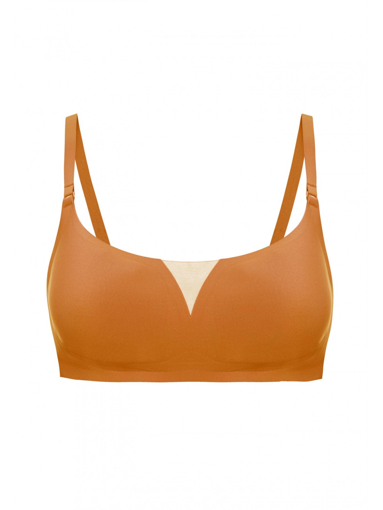 Бесшовный бескаркасный тонкий бюстгальтер. Ощущение абсолютного комфорта. Тонкие съемные корректоры. Спереди между чашек декоративная вставка из сетки. Бюстгальтер выполнен из одной цельной детали. Технология «Sewfree».