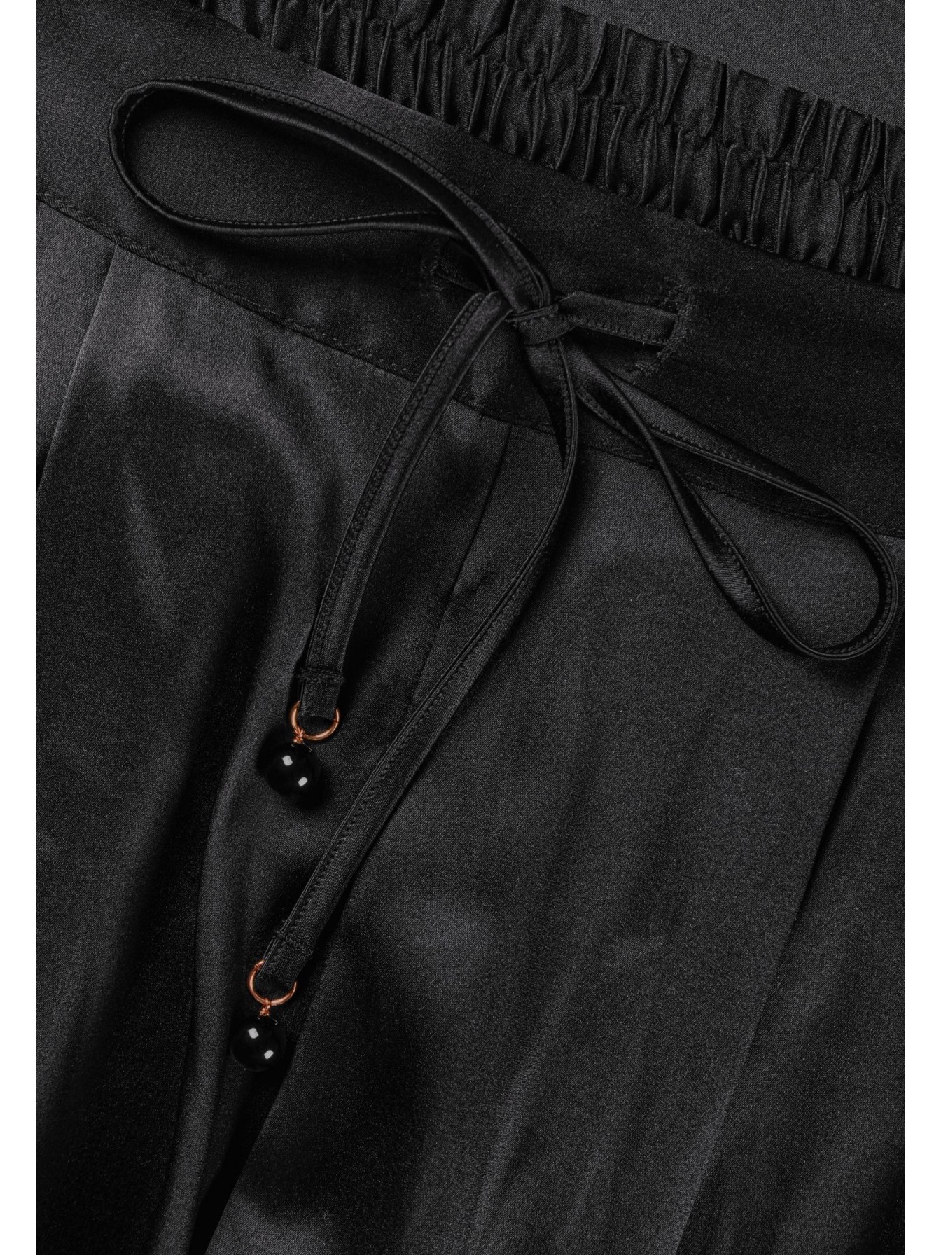 Брюки прямого свободного кроя из шелка и вискозы. Пояс на резинке. Боковые карманы.