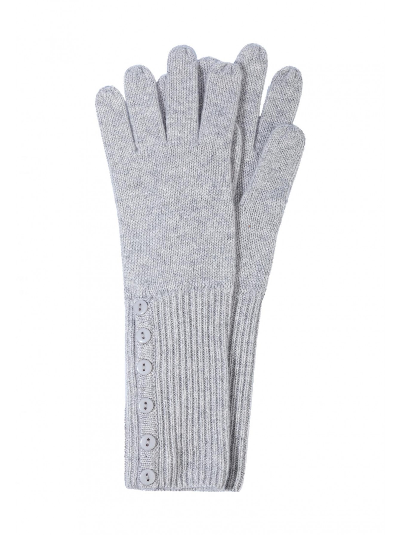 Теплые высокие перчатки из чистого кашемира, украшенные небольшими пуговицами.