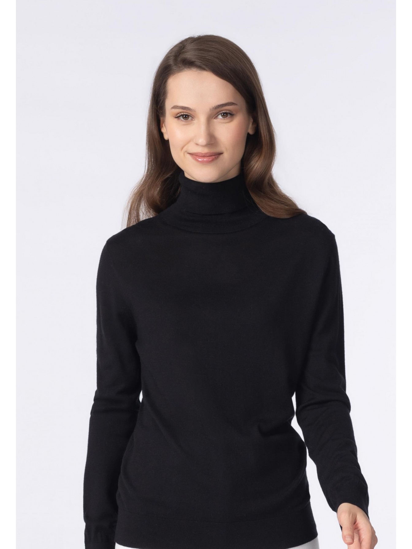 Водолазка полуприлегающего силуэта. Длина до бедер. Воротник-стойка с отворотом. Манжеты и низ оформлены вязаной резинкой.
