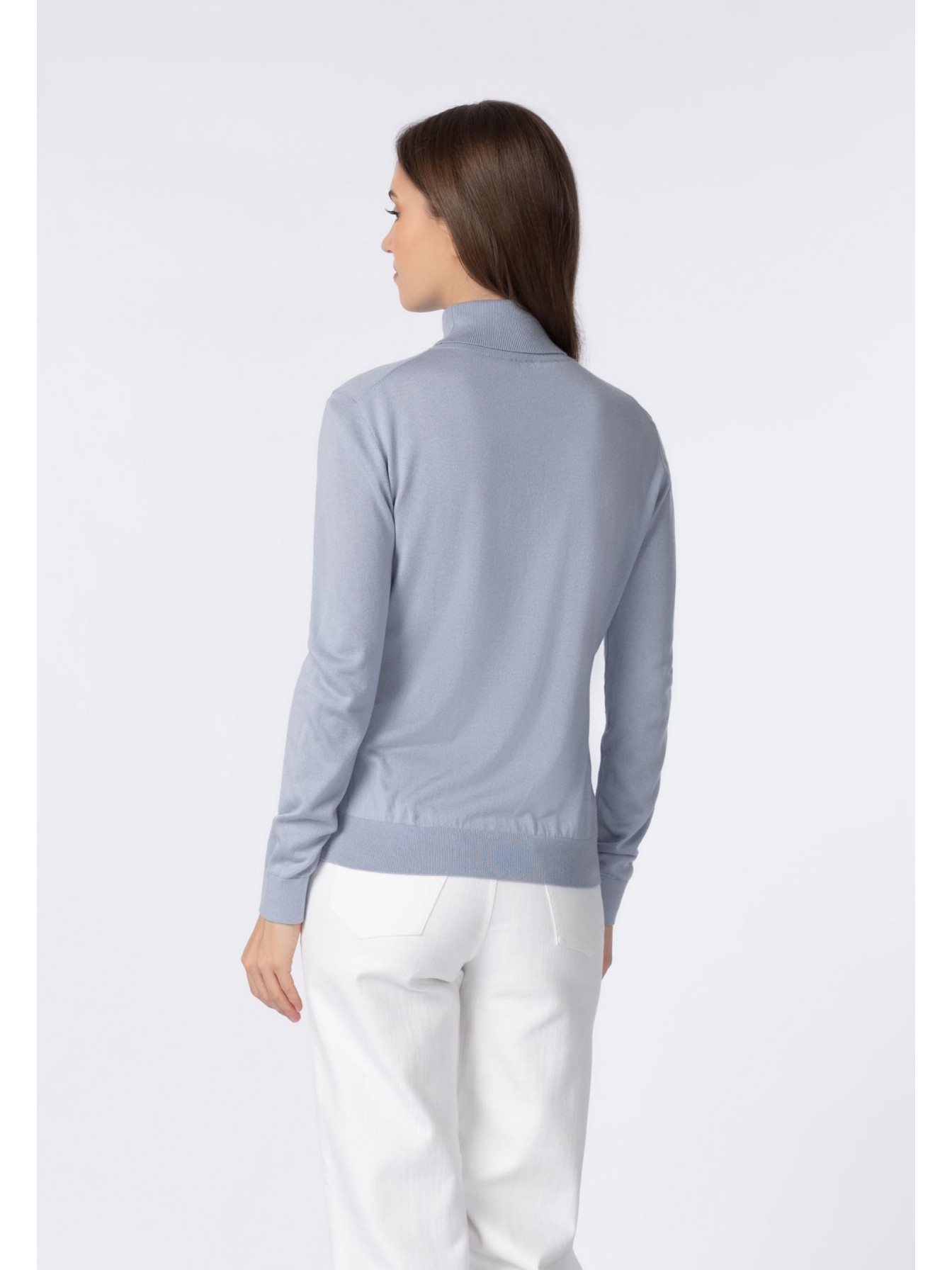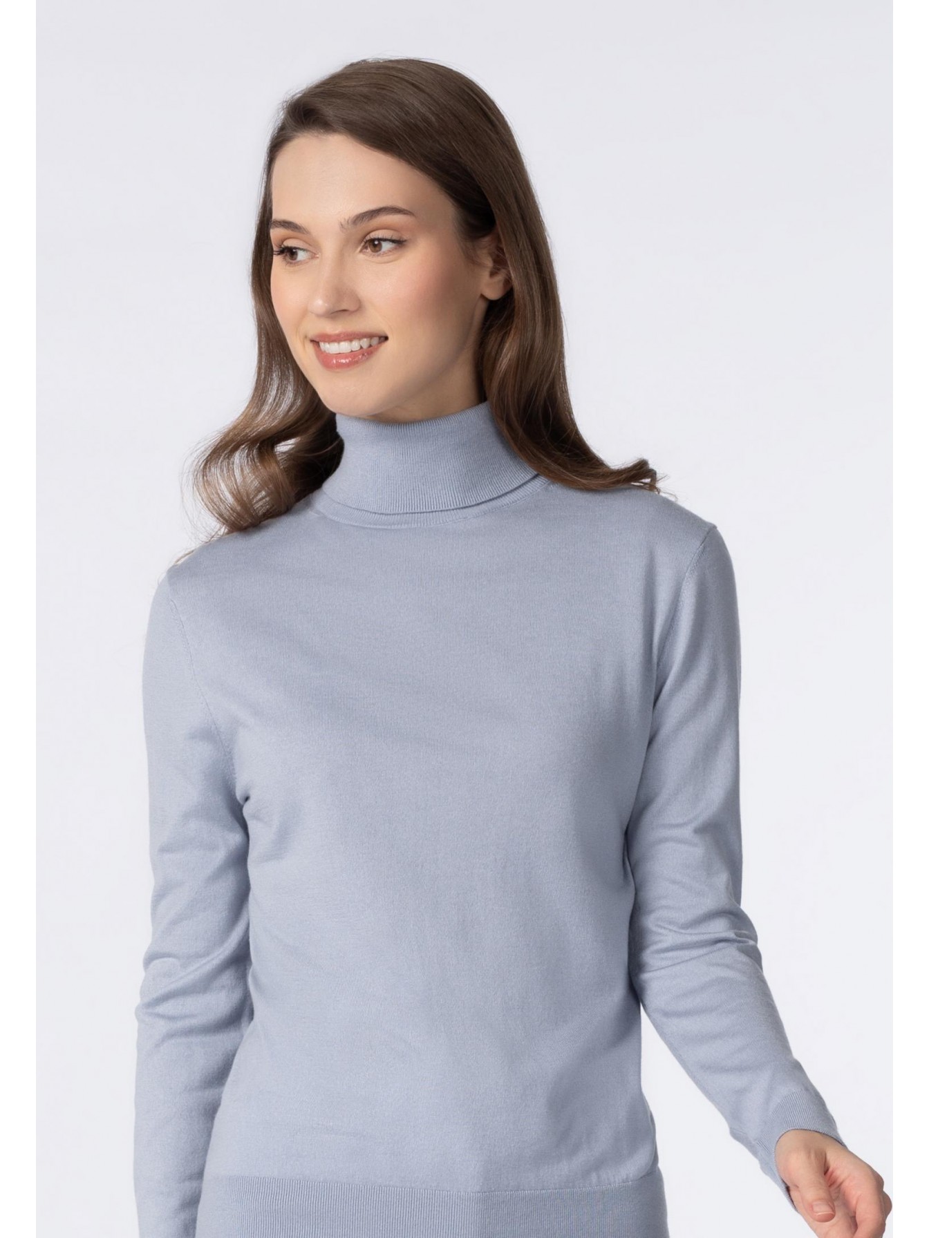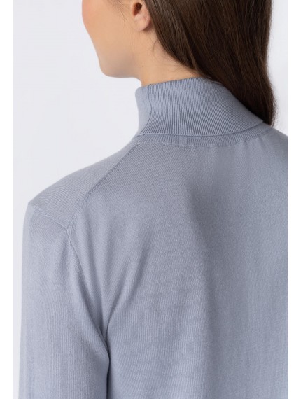 Водолазка полуприлегающего силуэта. Длина до бедер. Воротник-стойка с отворотом. Манжеты и низ оформлены вязаной резинкой.