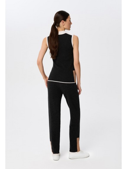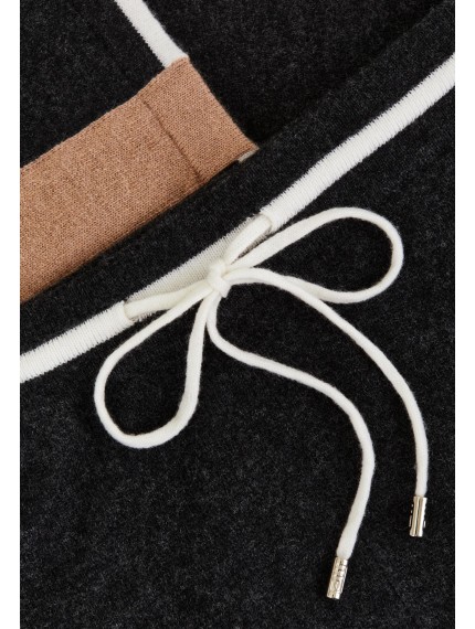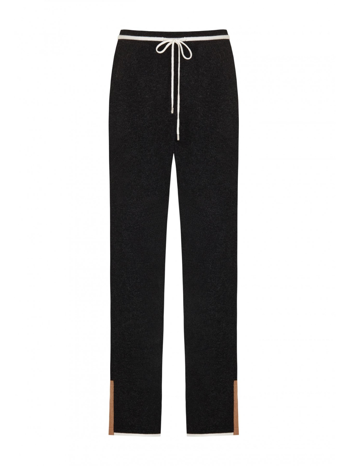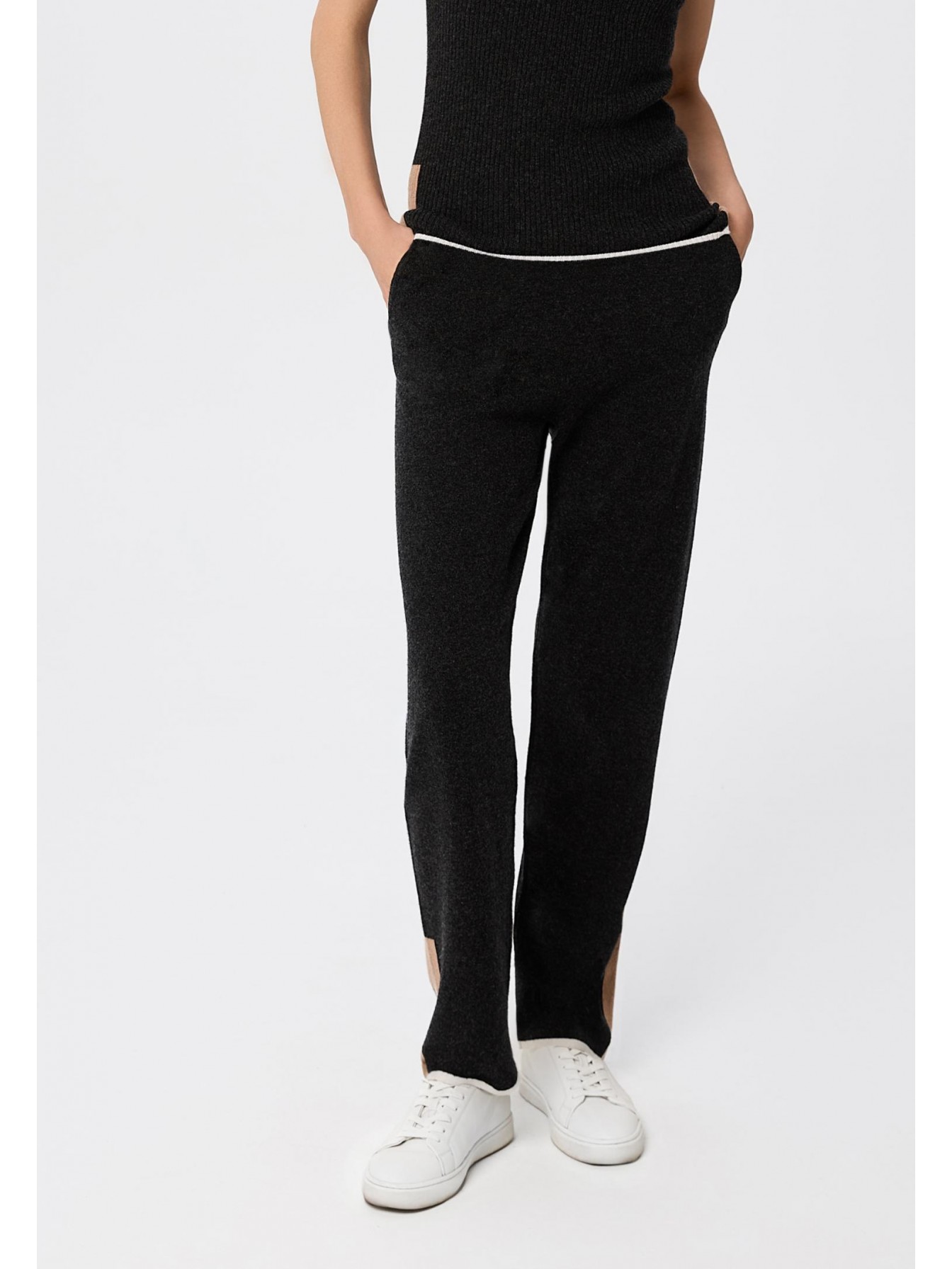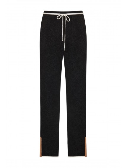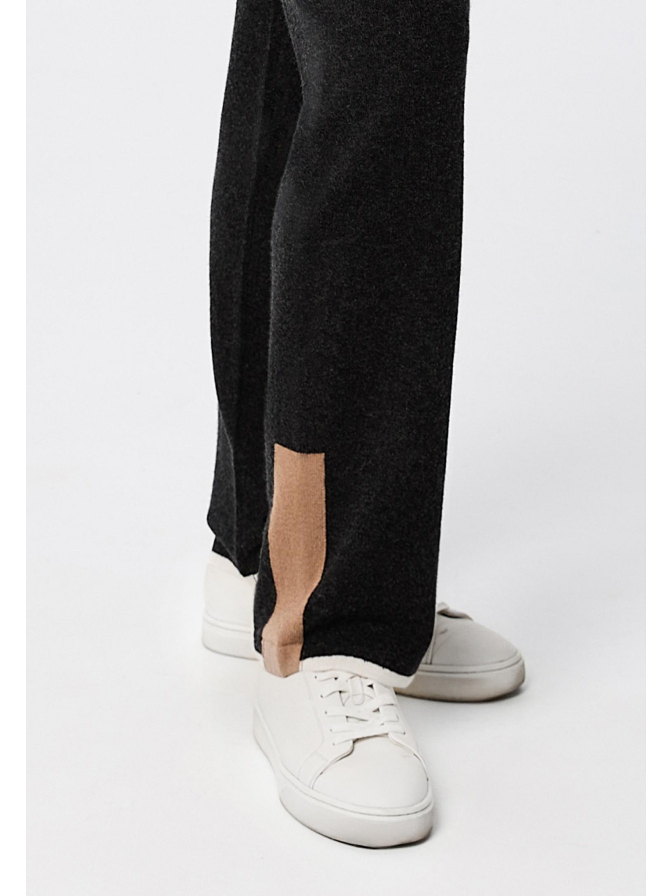 Брюки, слегка зауженные книзу. Эластичный пояс с кулиской для комфортной посадки. По бокам карманы. Контрастные детали в стиле колор-блок на щиколотке и поясе.