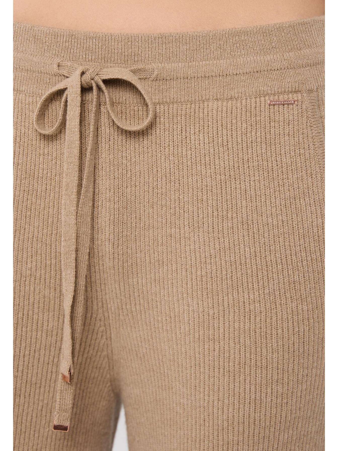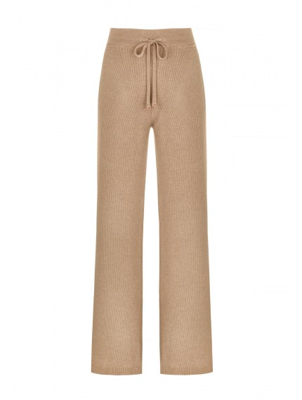 Брюки свободного кроя из трикотажа в рубчик. Эластичный пояс со шнуром. Боковые карманы.