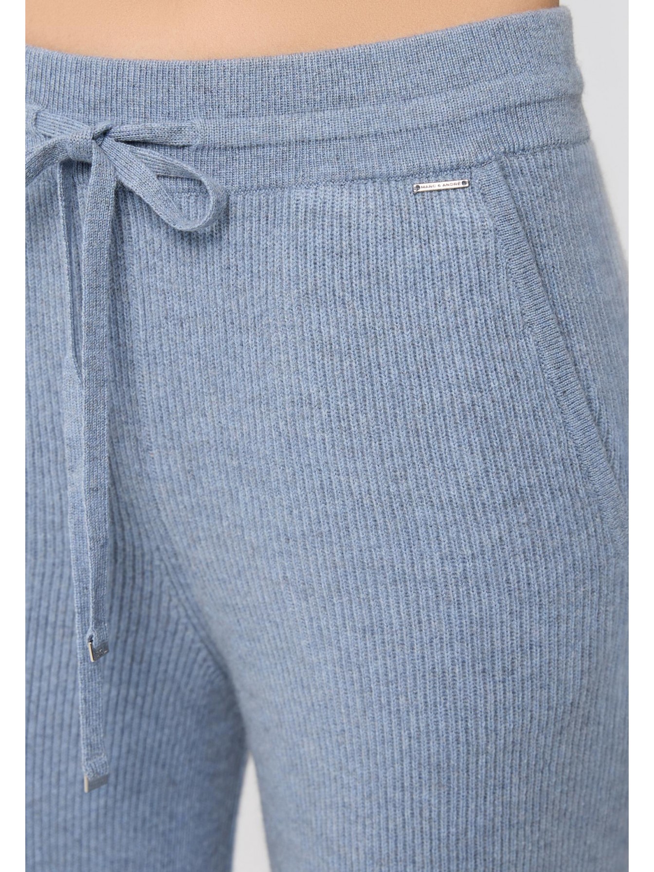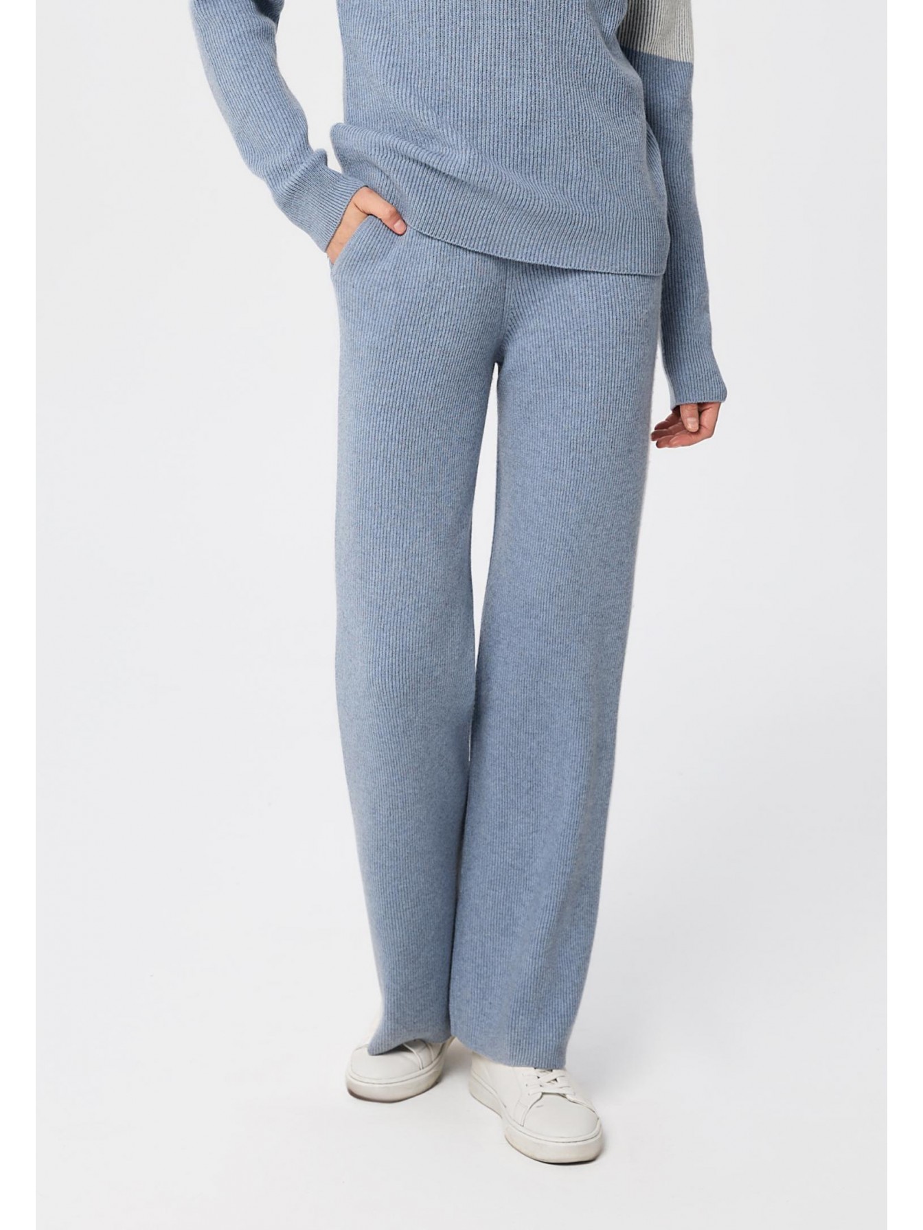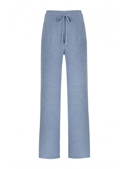 Брюки свободного кроя из трикотажа в рубчик. Эластичный пояс со шнуром. Боковые карманы.