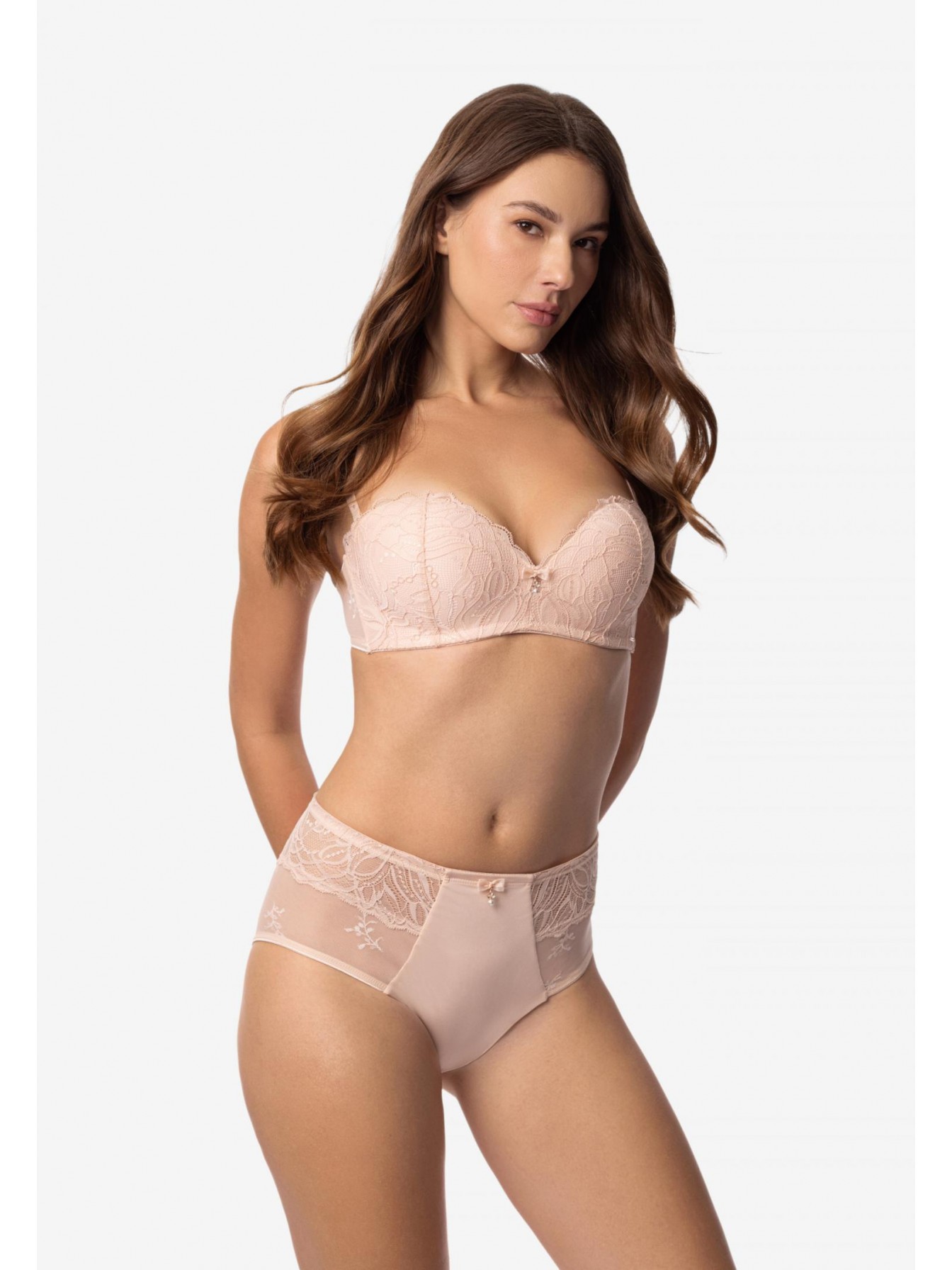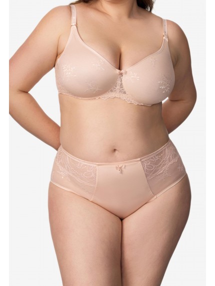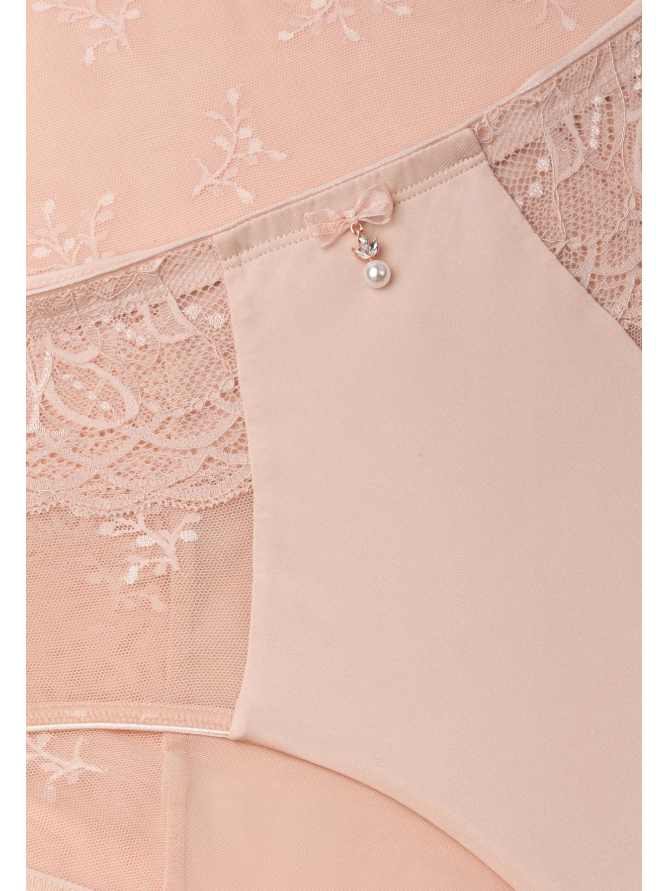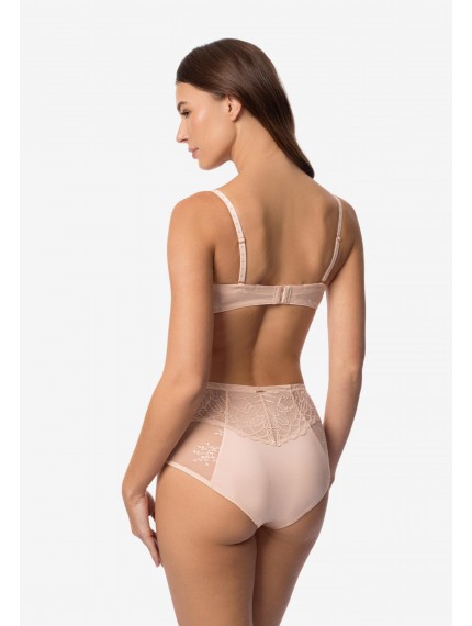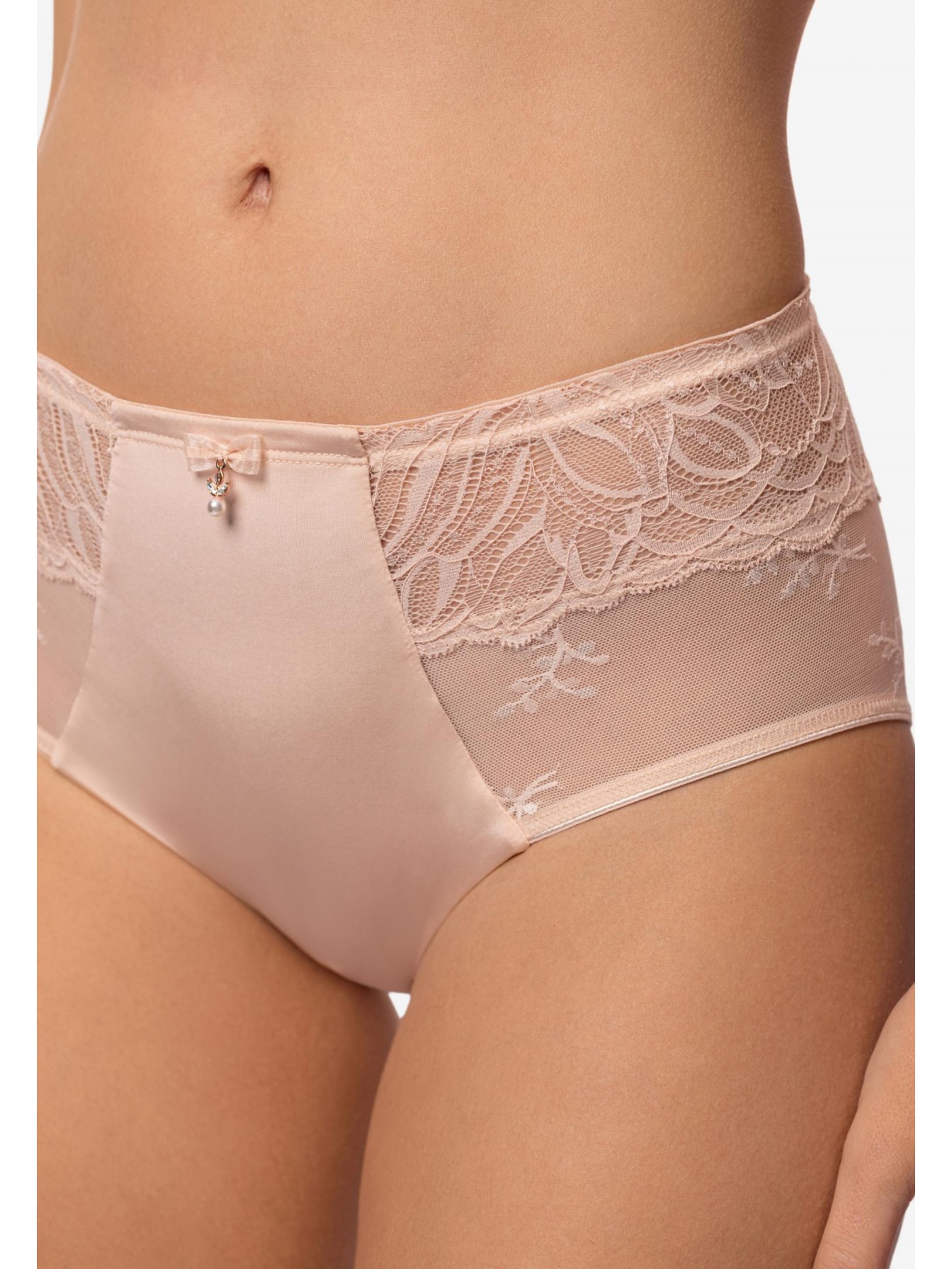 Трусы-брифы со средней линией талии. Передняя деталь: сочетание кружева, сетки и микрофибры. Задняя деталь из микрофибры со вставкой из кружева.