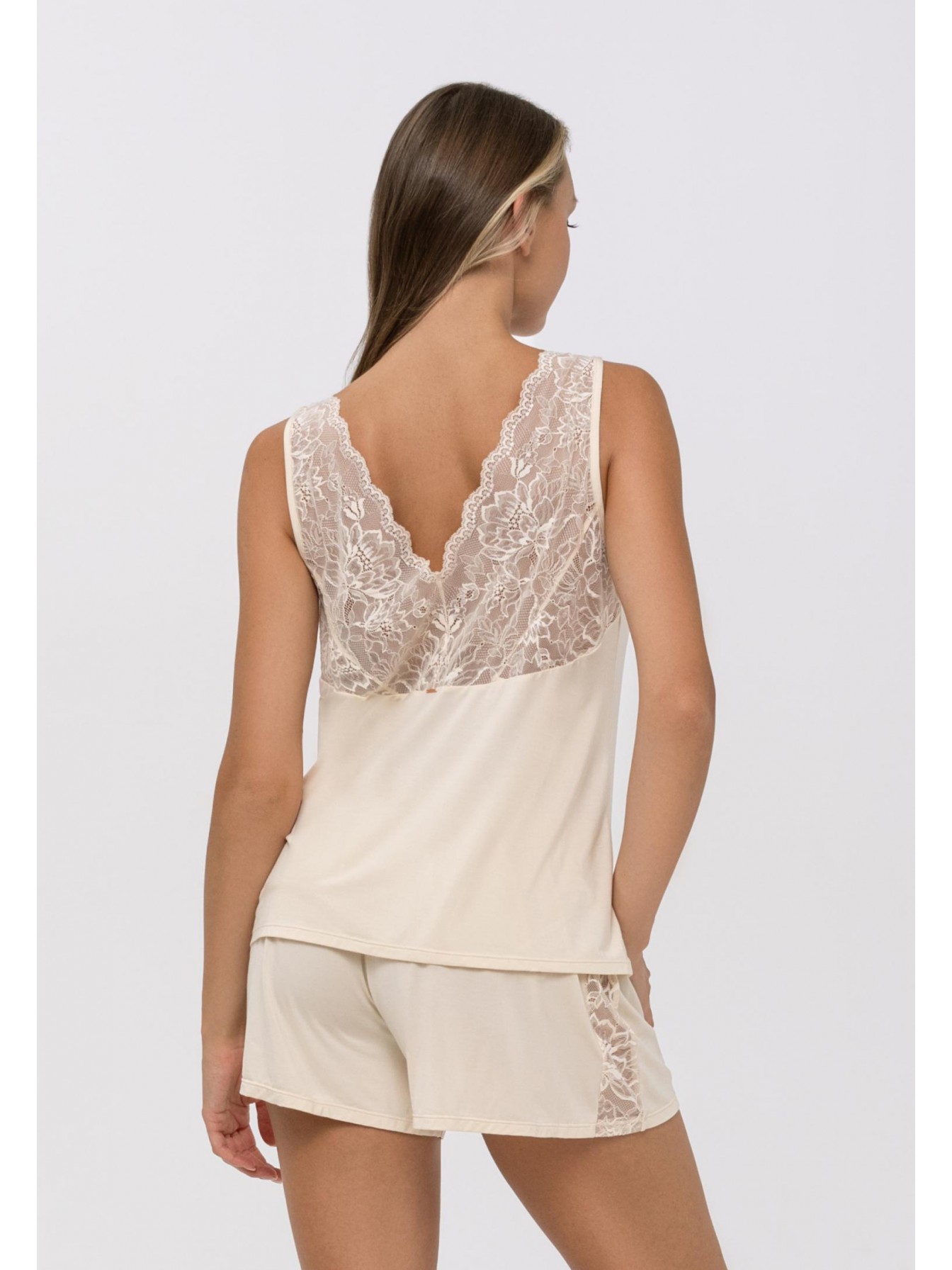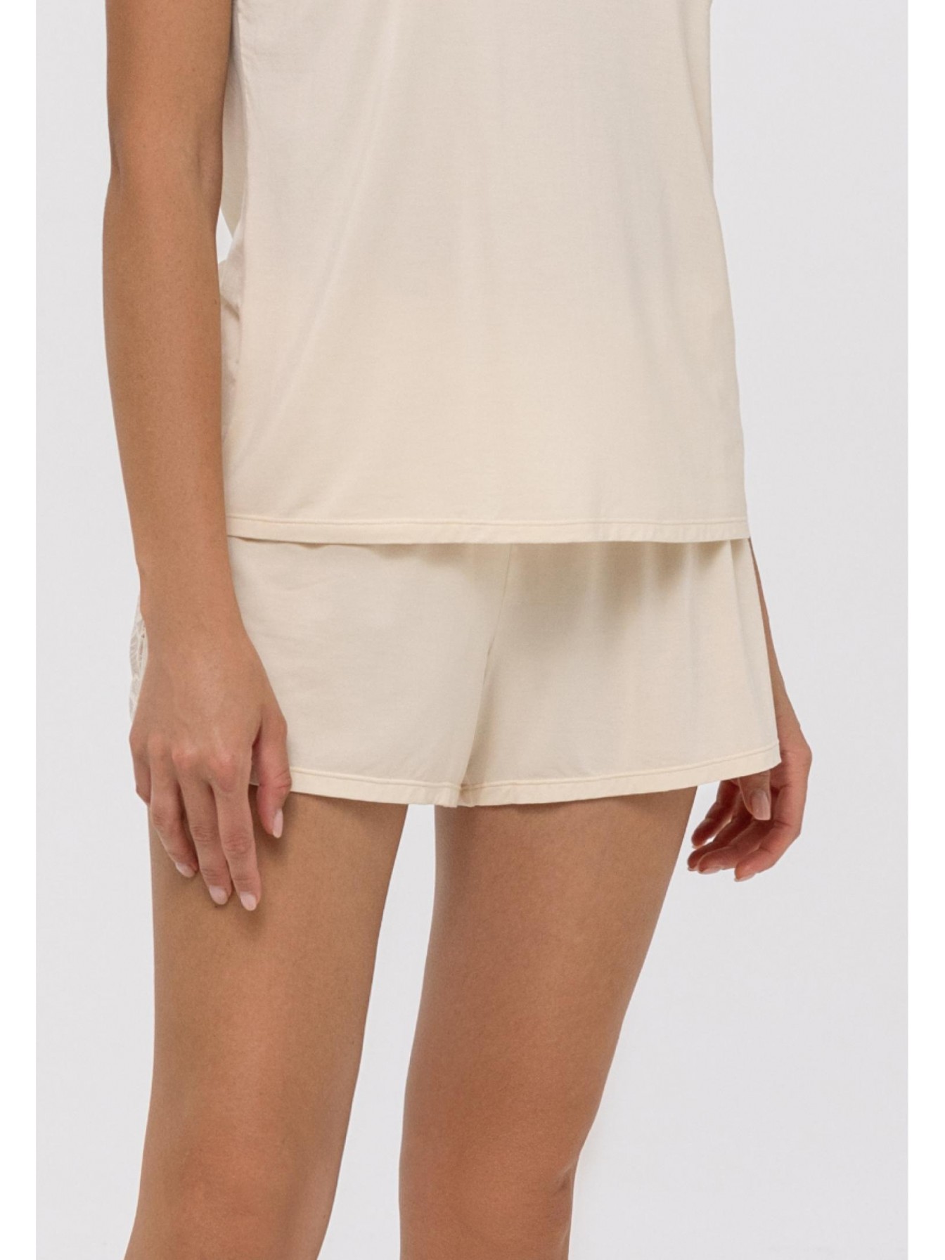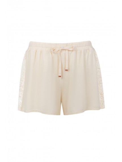 Короткие шорты свободного кроя. Пояс на резинке и кулиске. По бокам – кружевные вставки. Основной материал – вискоза.