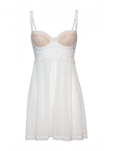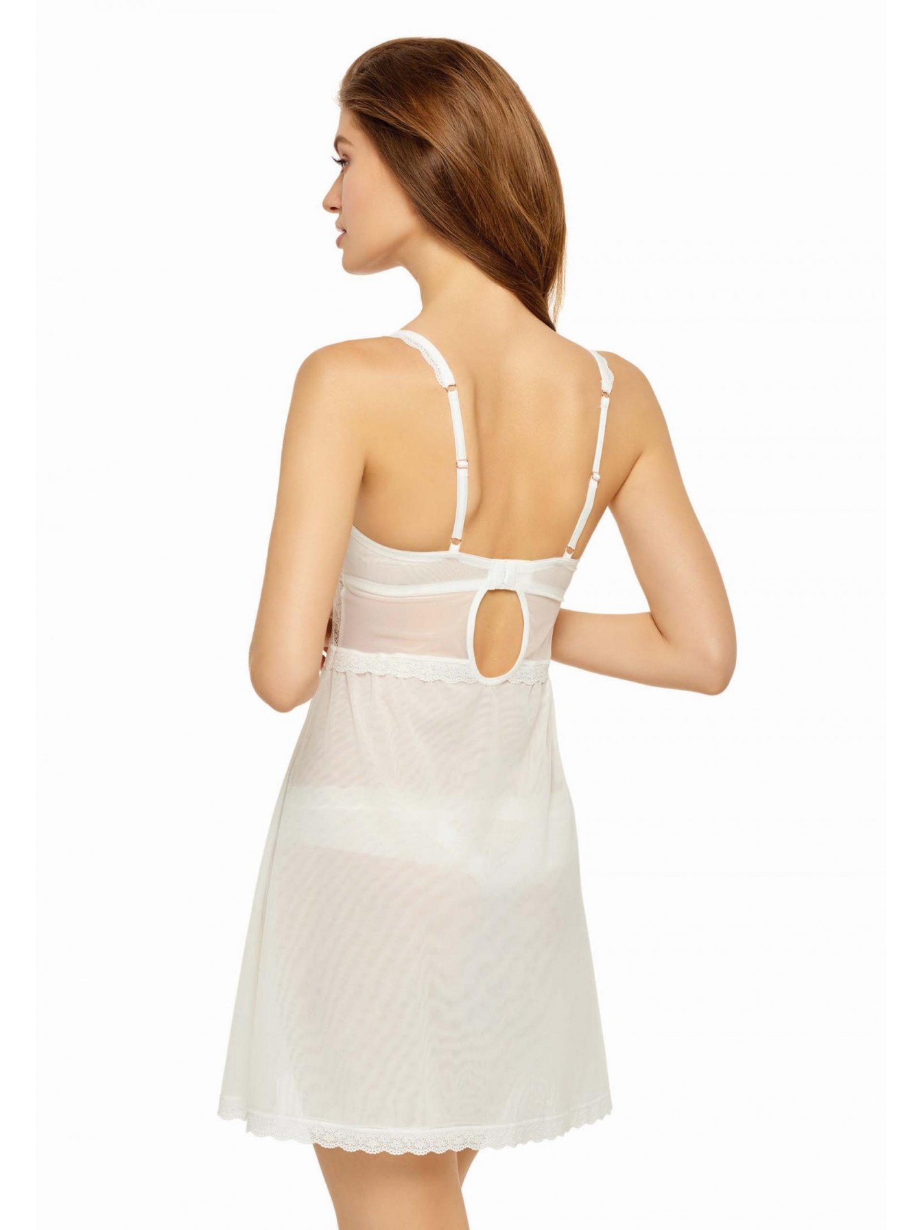 Ночная сорочка на каркасной поддержке с дублированной шитой поролоновой чашкой. Чашка с внутренней стороны выполнена из хлопка. Нижний край изделия декорирован эластичным кружевом. Декор – шифоновый бантик с подвеской.